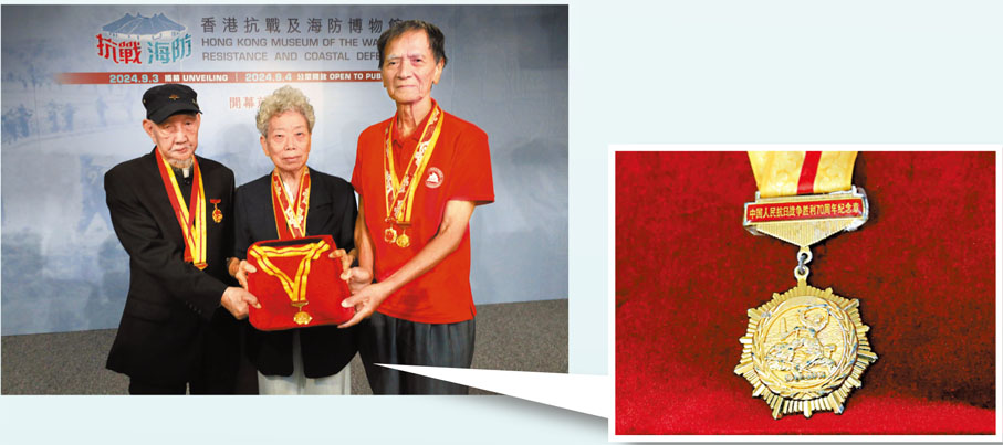 原東江縱隊港九獨立大隊老游擊戰士聯誼會會長林珍還借出「中國人民抗日戰爭勝利70周年」紀念章作重點展出,該紀念章是中央於2015年以中共中央、國務院、中央軍委名義,向約21萬名抗戰老戰士老同志、抗戰將領、為中國抗戰勝利作出貢獻的國際友人或其遺屬頒發,以表彰他們的歷史功勳。