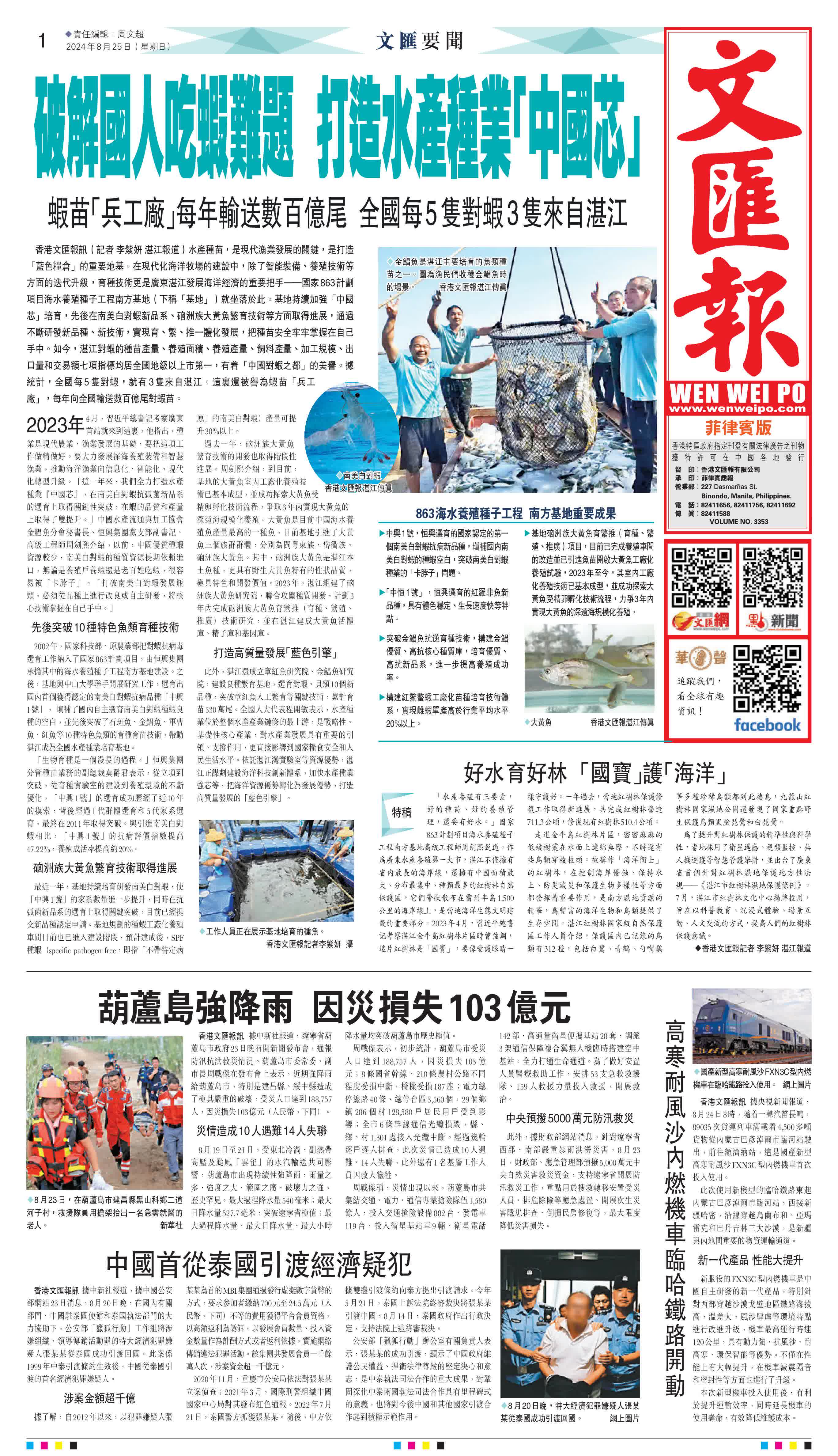 8月25日,《京華中原》《聯合日報》《訊報》《自由日報》等多家海外華媒聚焦對蝦的種苗產量、養殖面積、養殖產量、飼料產量、加工規模、出口量和交易額七項指標均居全國地級以上市第一,有着「中國對蝦之都」的美譽的湛江,並對湛江突破了南美白對蝦種蝦培育難題,每年向全國輸送數百億尾對蝦苗,被譽為蝦苗「兵工廠」,以及湛江還是金鯧魚、石斑魚、生蠔等多種水產的重要出口地等進行了關注和報道。