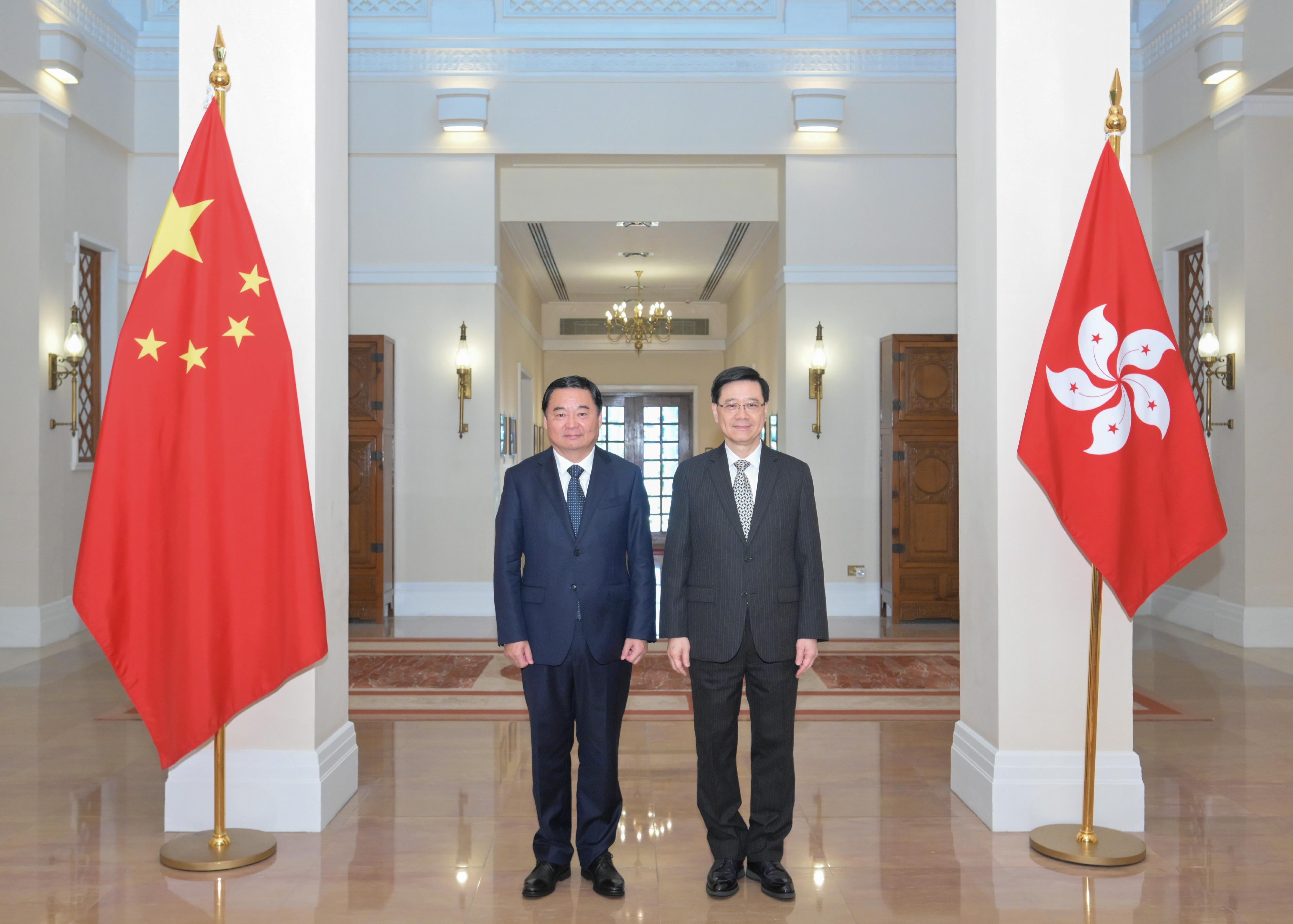 大公文匯全媒體報道,行政長官李家超今日(28日)在禮賓府與遼寧省委書記郝鵬會面,就深化遼港交流合作交換意見。政務司司長陳國基、政制及內地事務局局長曾國衞和行政長官辦公室主任葉文娟亦有出席。