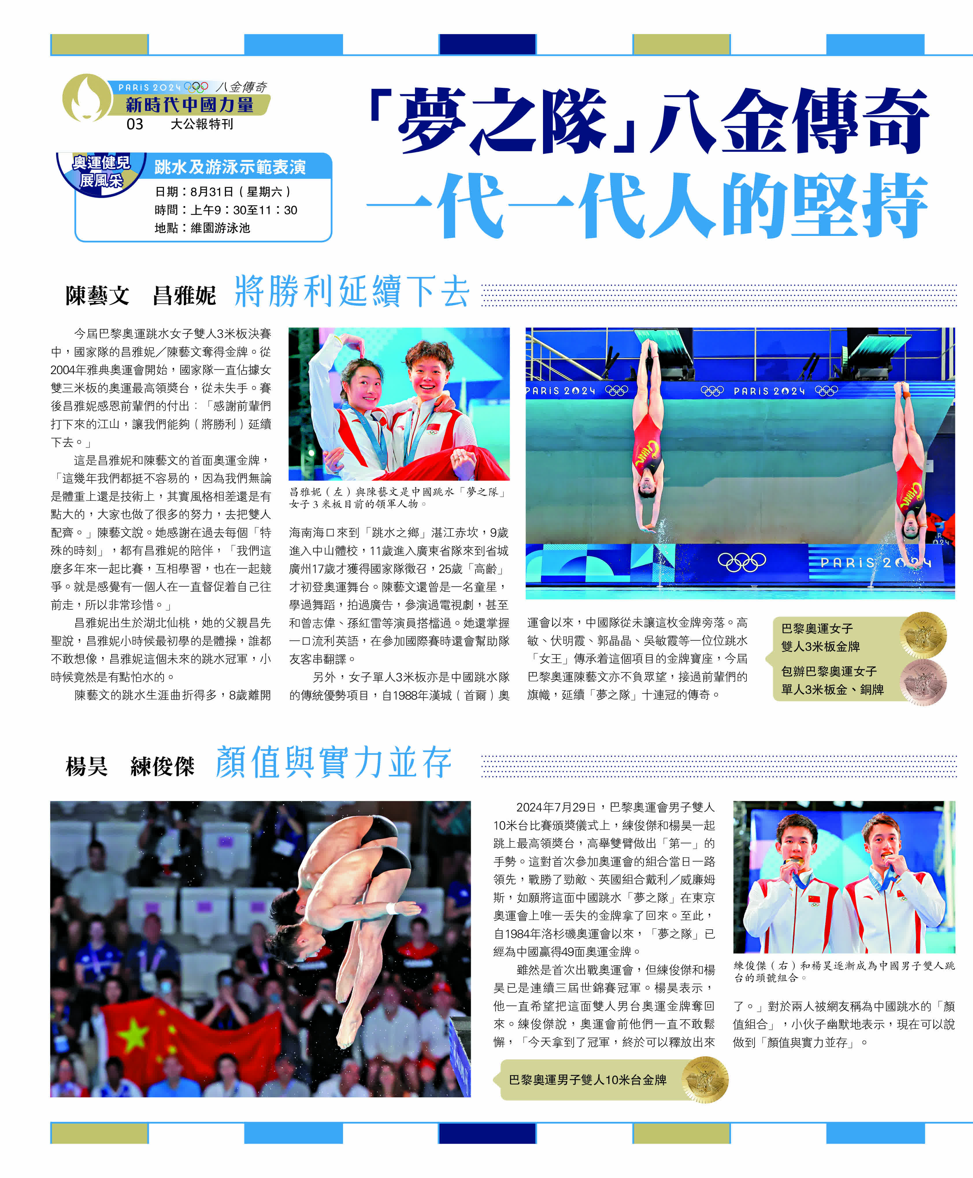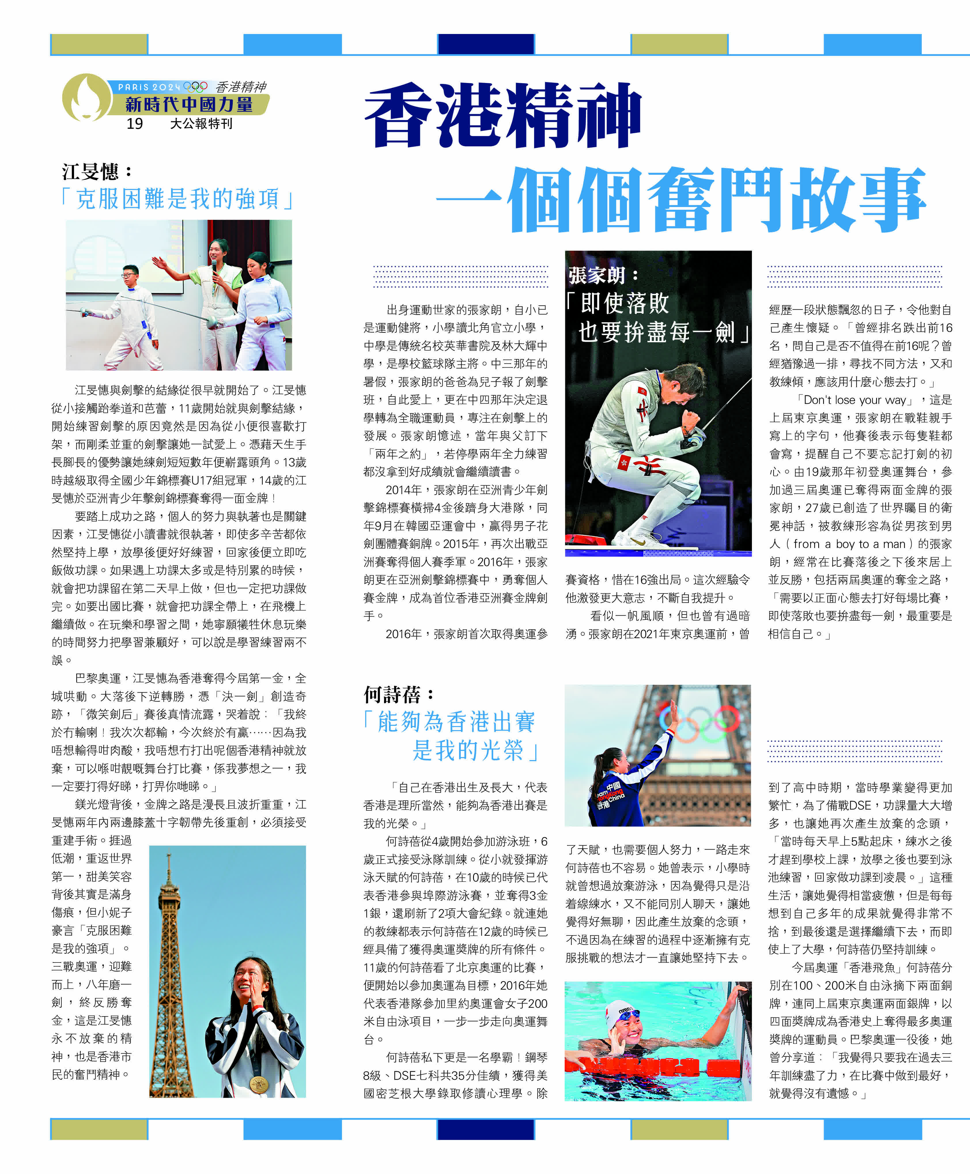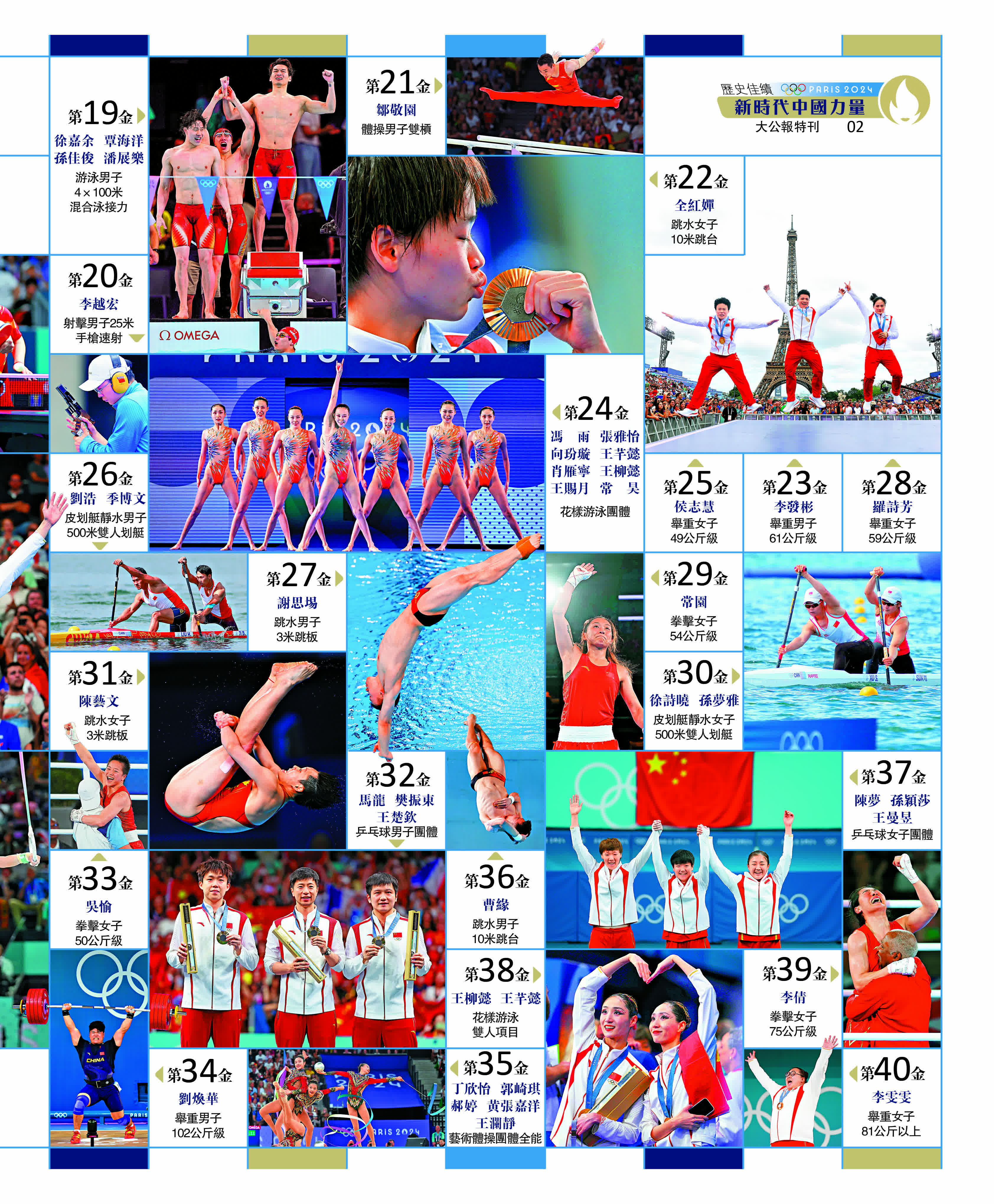 大公文匯全媒體報道,2024年巴黎奧運會內地奧運健兒代表團29日抵港,進行為期3天訪問活動。本次國家隊訪港代表團包括16個運動項目共65名運動員和8名教練,除網球女單金牌得主鄭欽文正忙於美網比賽,國家隊今屆奧運其餘39個項目的金牌運動員都會隨團訪港。《大公報》29日推出特刊《奧運珍藏》記錄巴黎奧運高燃時刻,歡迎內地奧運健兒。