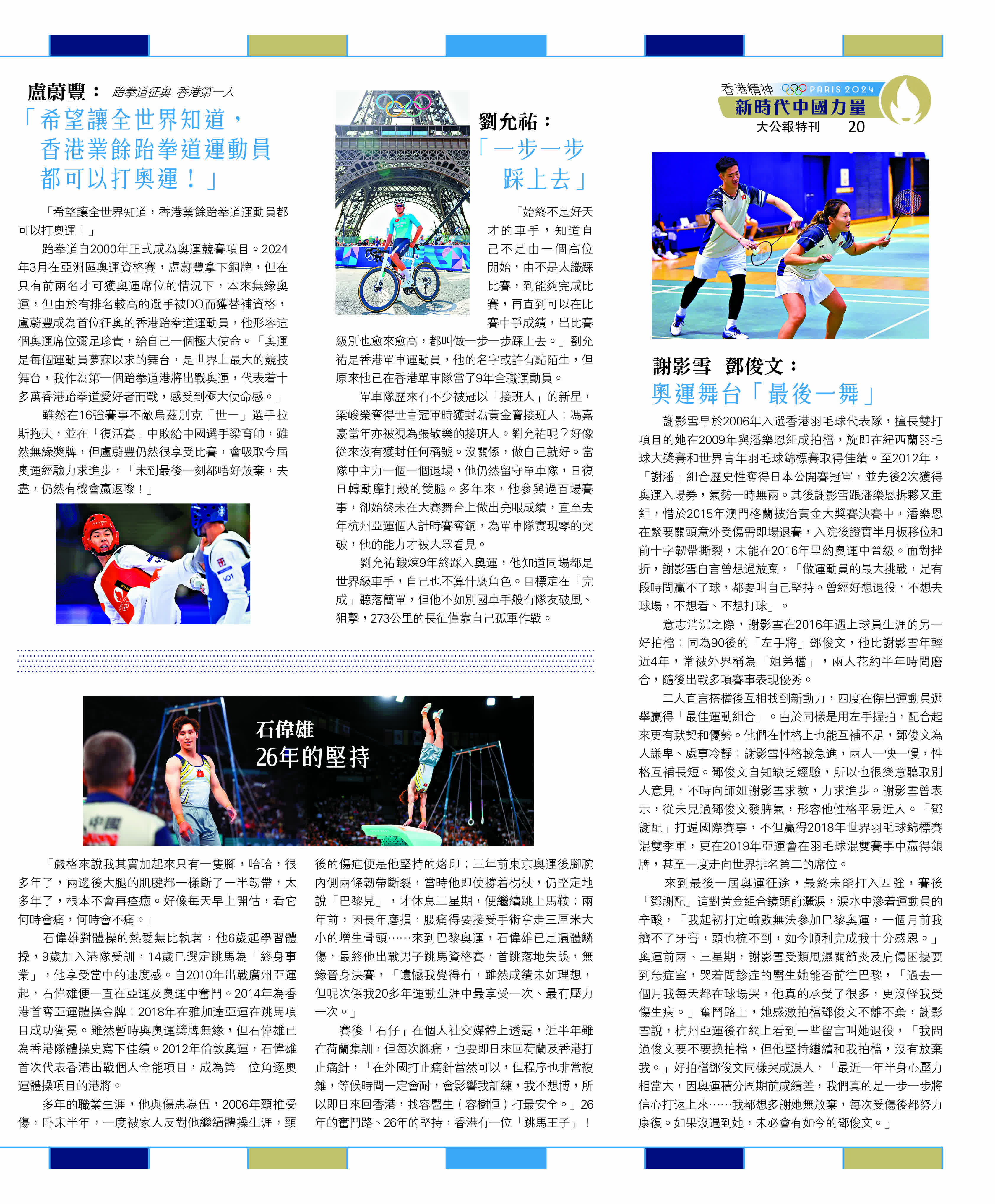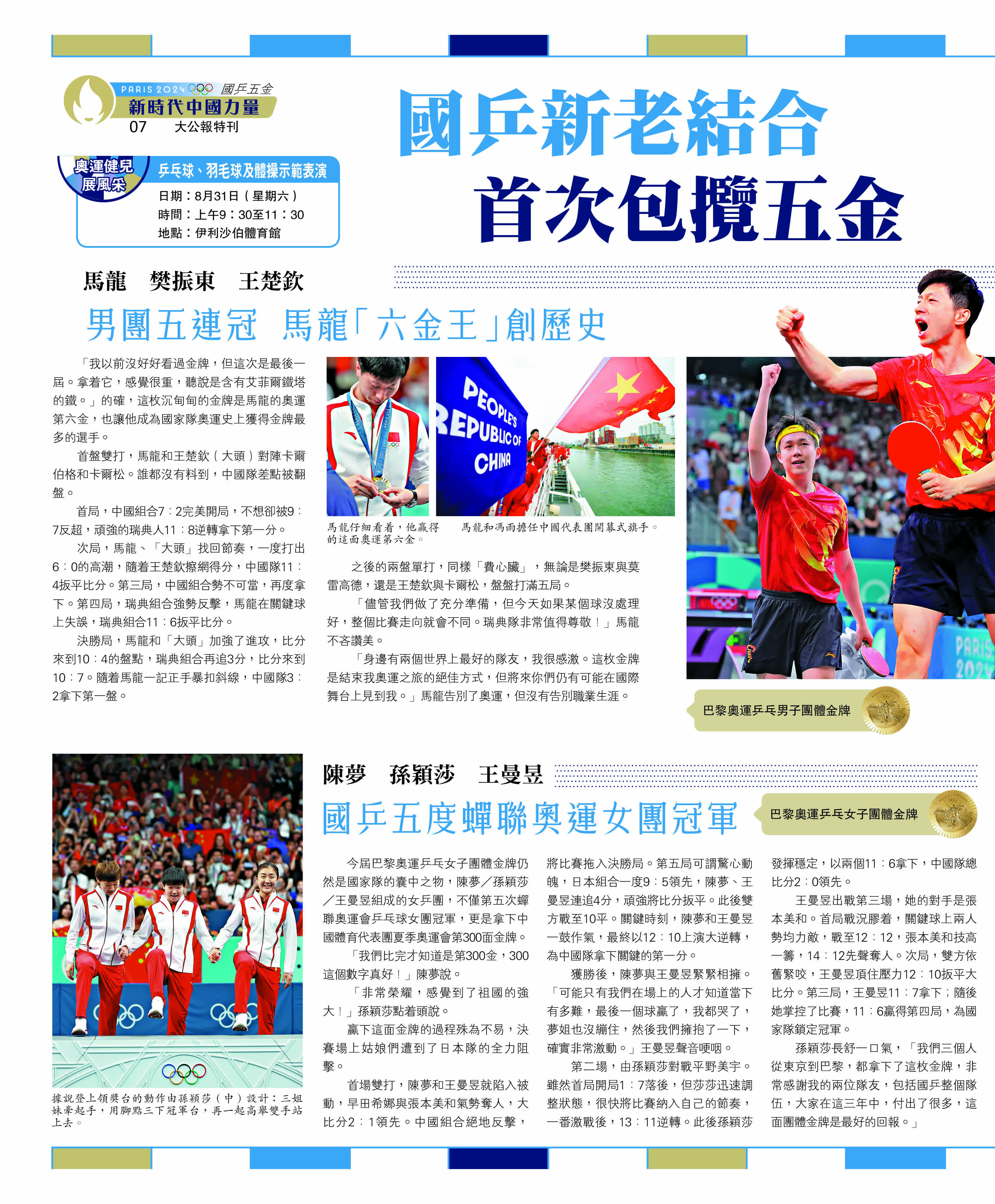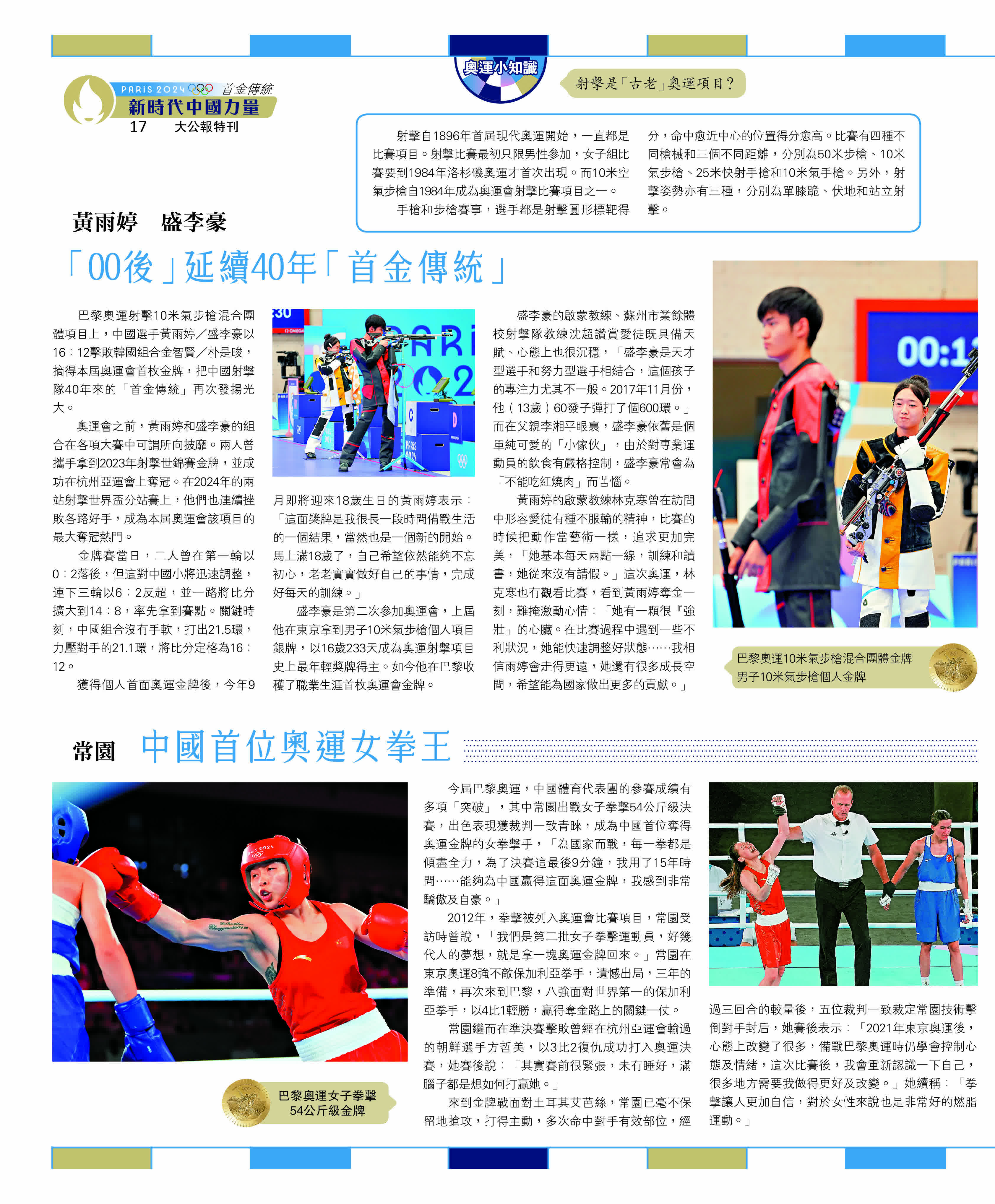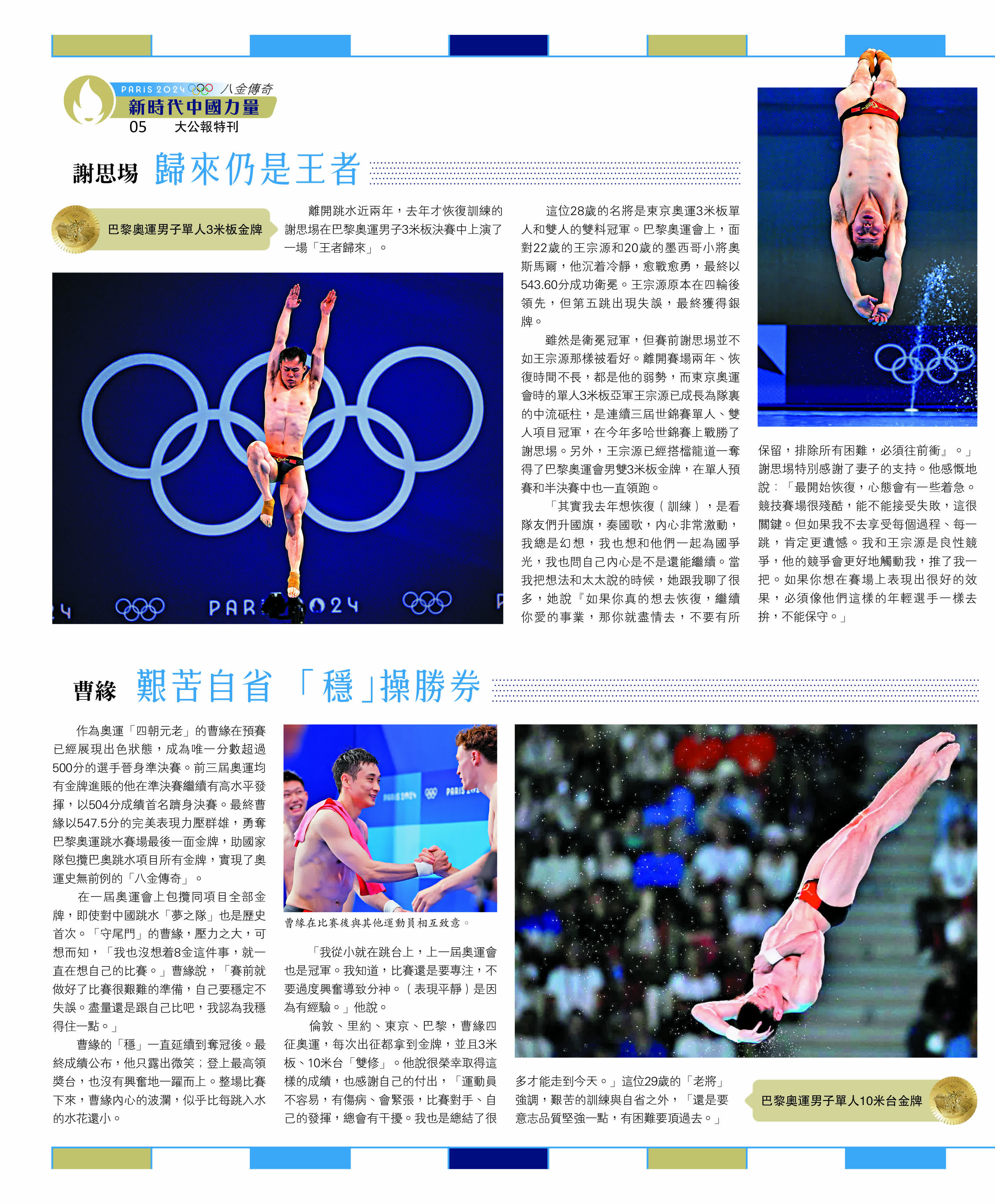 大公文匯全媒體報道,2024年巴黎奧運會內地奧運健兒代表團29日抵港,進行為期3天訪問活動。本次國家隊訪港代表團包括16個運動項目共65名運動員和8名教練,除網球女單金牌得主鄭欽文正忙於美網比賽,國家隊今屆奧運其餘39個項目的金牌運動員都會隨團訪港。《大公報》29日推出特刊《奧運珍藏》記錄巴黎奧運高燃時刻,歡迎內地奧運健兒。