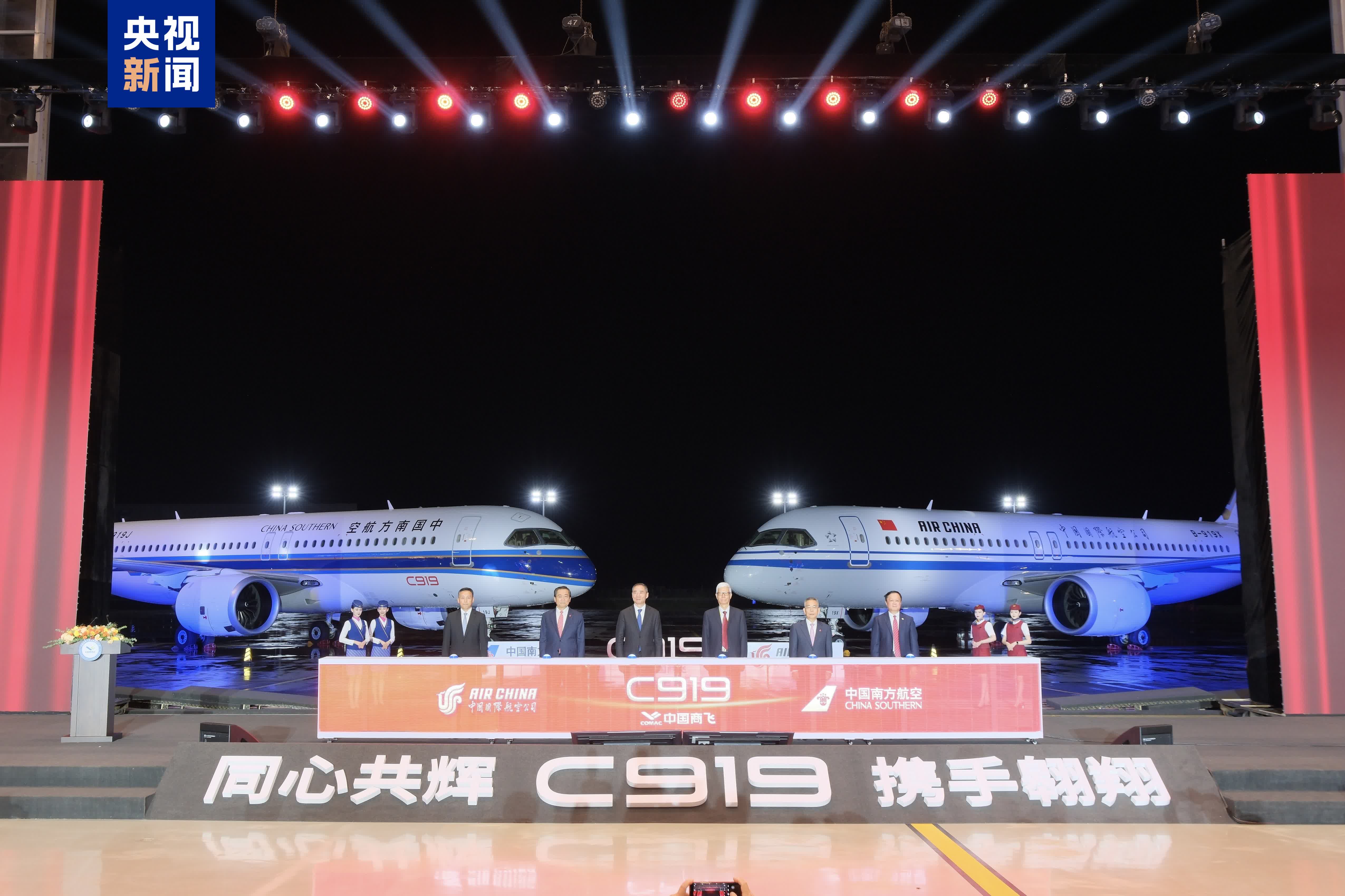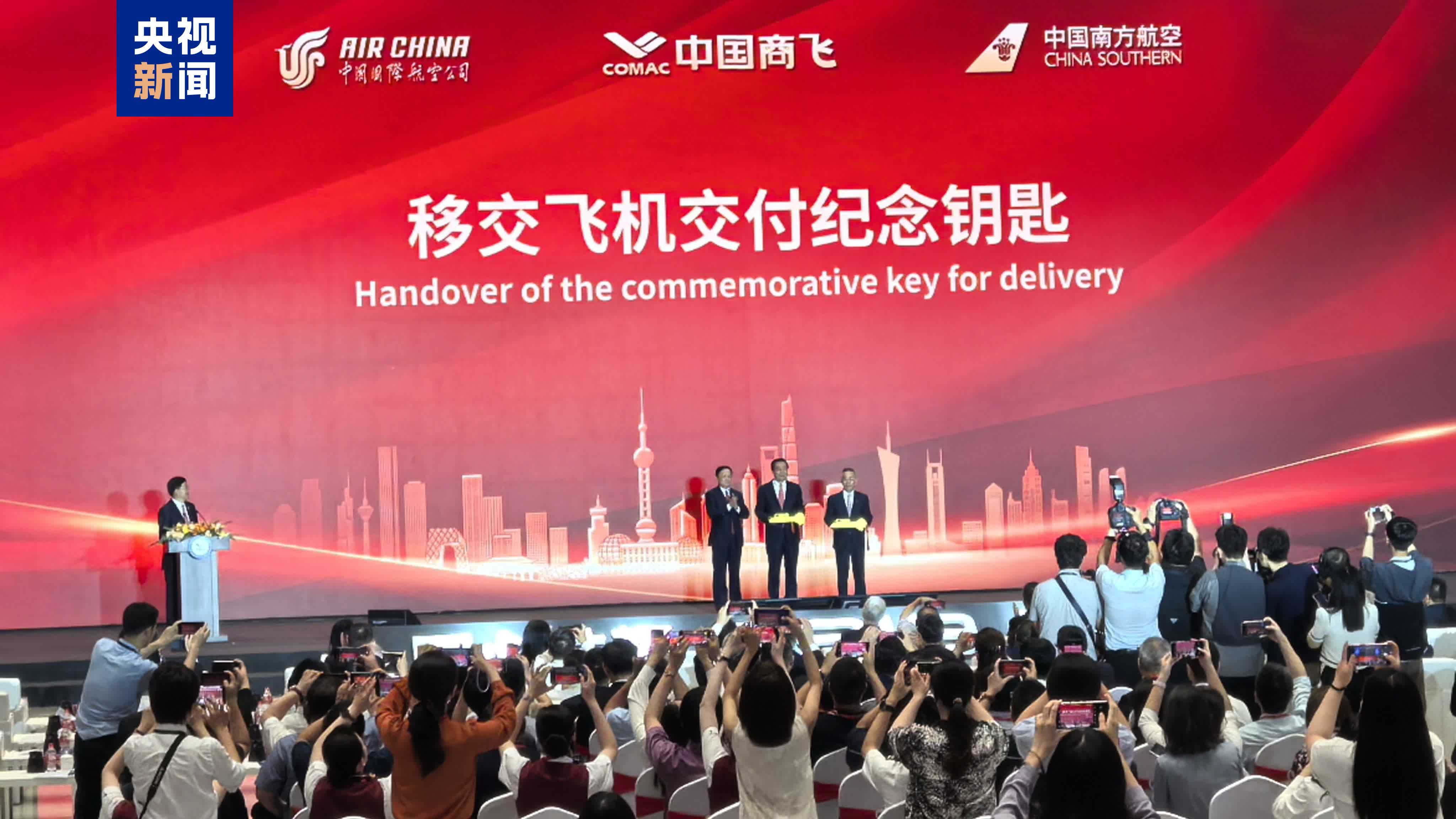 中國商飛向國航、南航頒發飛機銷售證並移交飛機交付紀念鑰匙,中國民航局向國航、南航頒發國籍登記證、單機適航證和無綫電台執照。
