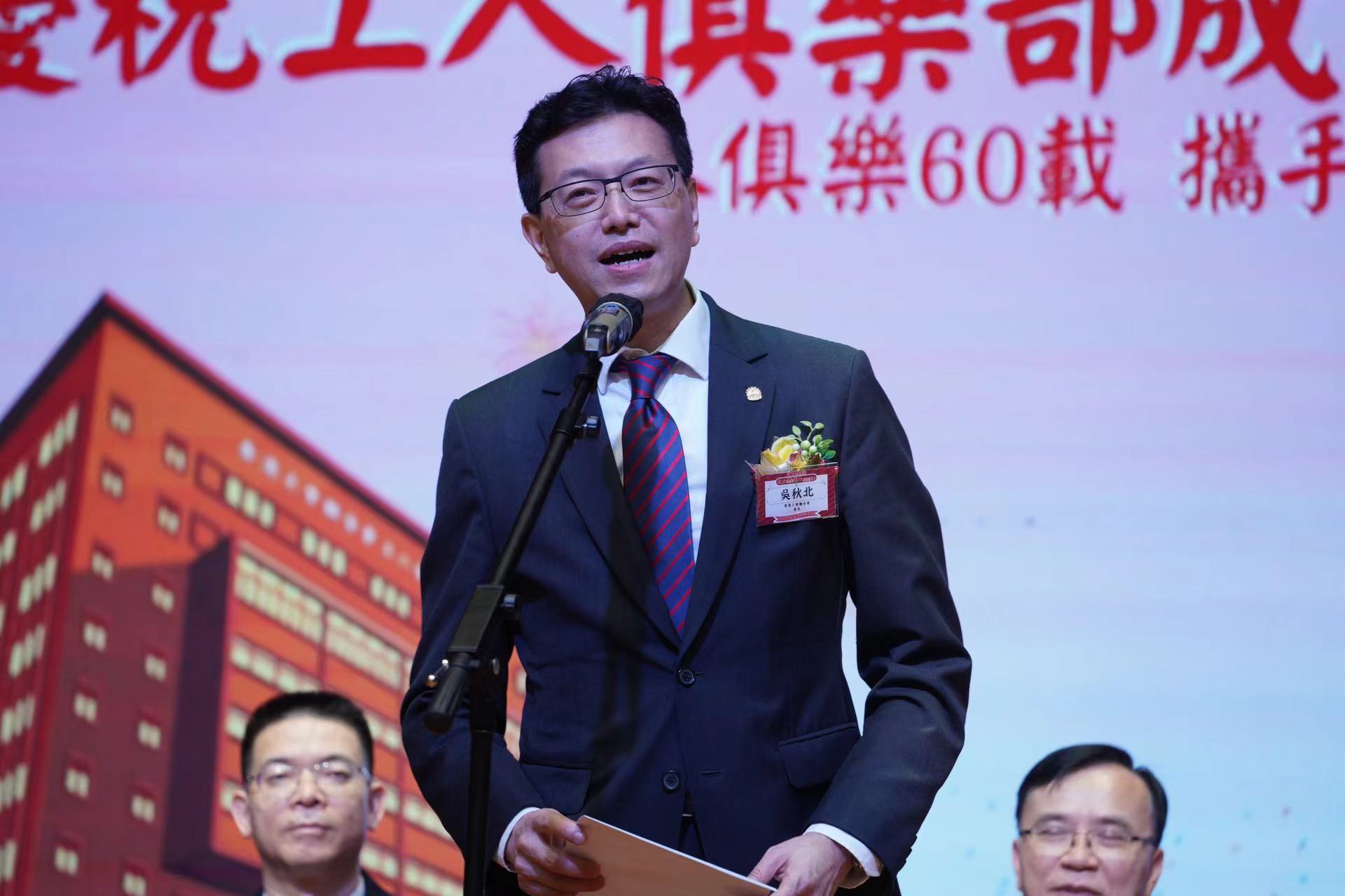 勞工及福利局署理局長何啟明致辭時稱,工聯會歷史悠久,從80年代開始,便提供不同課程給香港市民參加。工聯會服務基層,令市民享受更多康樂服務之餘,在就業進程更加持續。他期待未來60年,工聯會為市民帶來更多福祉。