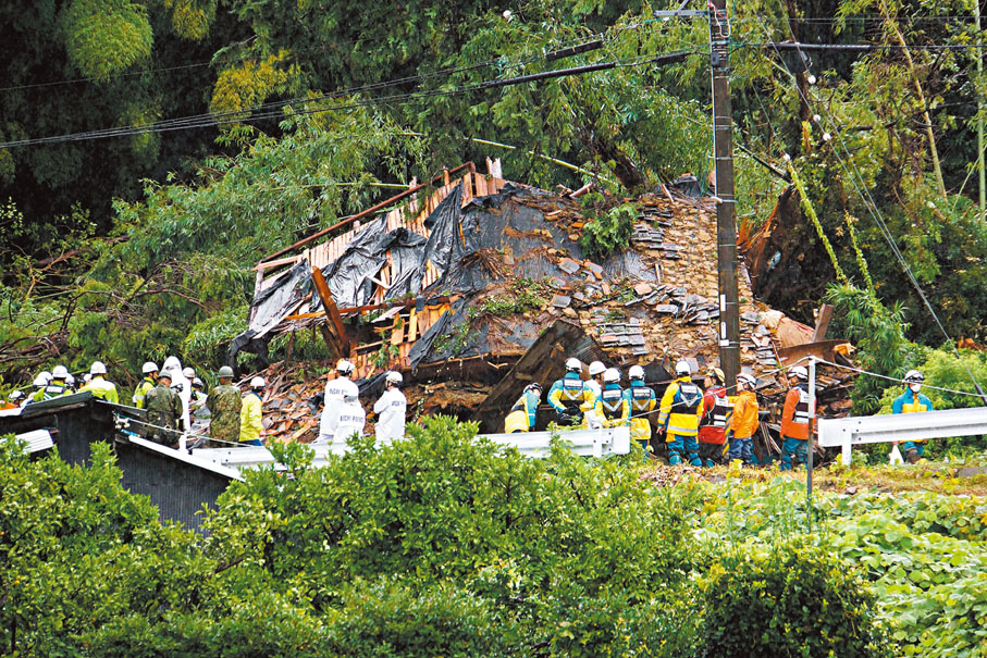 在愛知縣蒲郡市,當地周二晚間發生山泥傾瀉,一家5口被困屋內,救援人員緊急救出其中3名婦女,其中一名70多歲老婦死亡,另兩名男子一人危殆,一人截至周三晚仍然失蹤。宮崎縣周三下午受強風吹襲,多座建築玻璃碎裂,造成至少4人受傷。