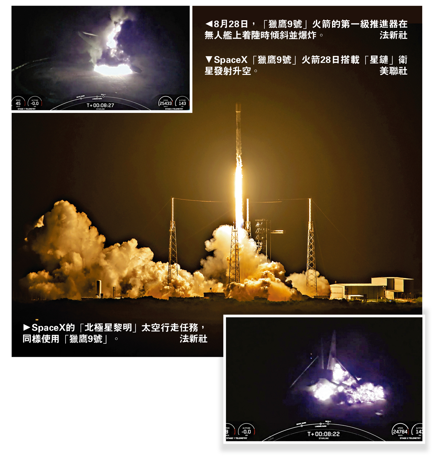 美國太空探索技術公司SpaceX的「獵鷹9號」火箭又出事故。當地時間8月28日凌晨,「獵鷹9號」火箭在執行「星鏈」衛星發射任務時,第一節助推器在返回地球着陸時發生爆炸。雖未造成傷亡或財產損毀,但美國聯邦航空管理局(FAA)下令「獵鷹9號」全面停飛。這是「獵鷹9號」兩個月內第二次因為事故被停飛,預計將會對SpaceX後續發射任務產生連鎖影響,包括首次商業太空漫步,以及接載2名太空人從國際空間站返回的計劃。