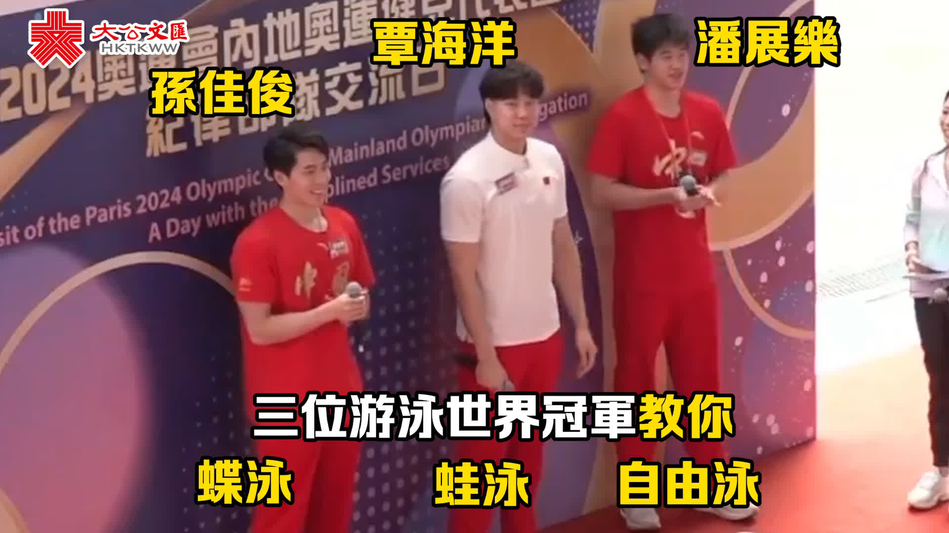 其中,三位游泳世界冠軍潘展樂、覃海洋、孫佳俊親自下場教學自由泳、蛙泳和蝶泳動作。三個人的示範風格各不相同,有潘展樂的「認真教學派」、覃海洋的「歡樂麻將派」,以及孫佳俊的「合力核心派」......爆笑十足~即刻去片!