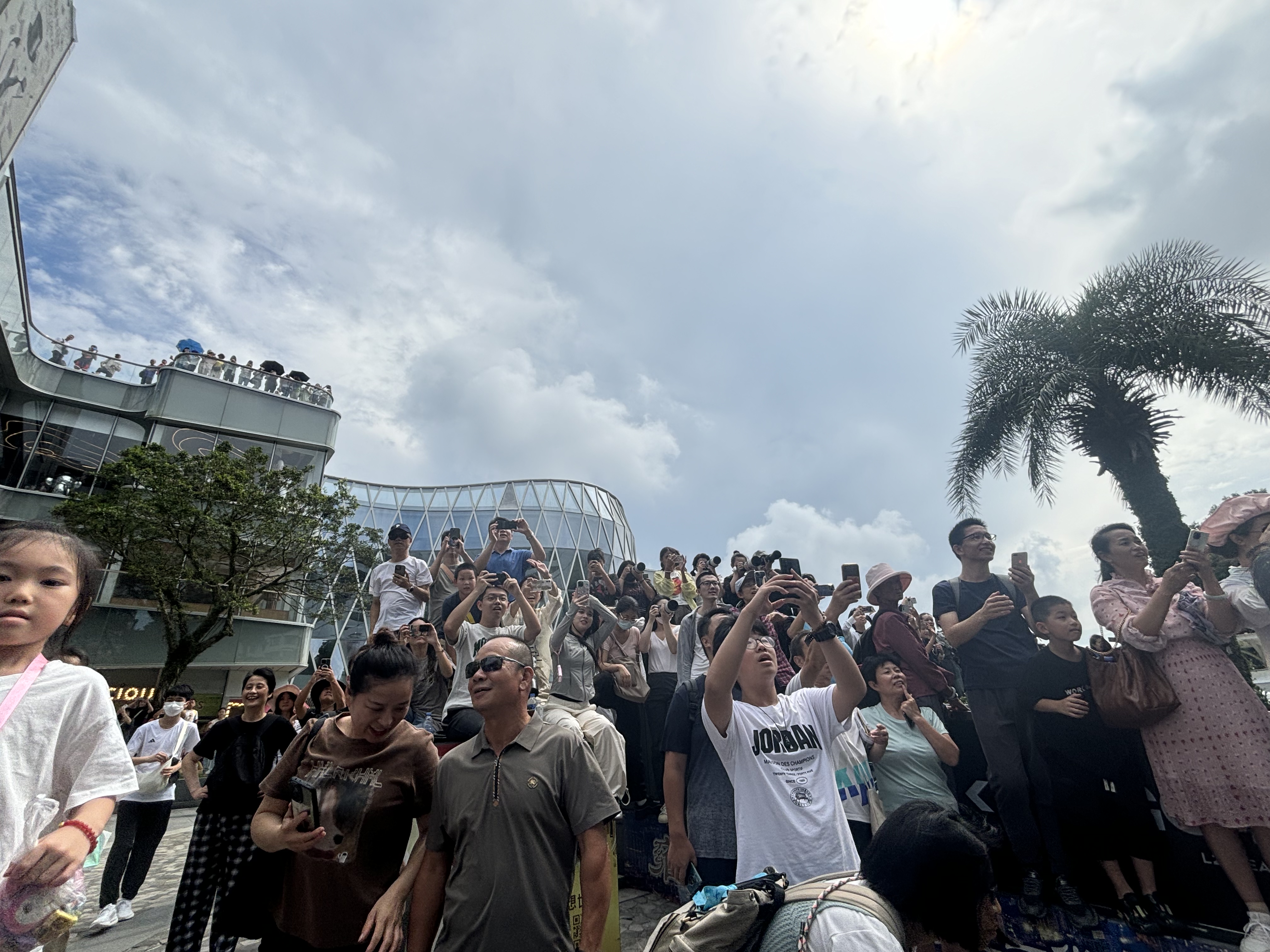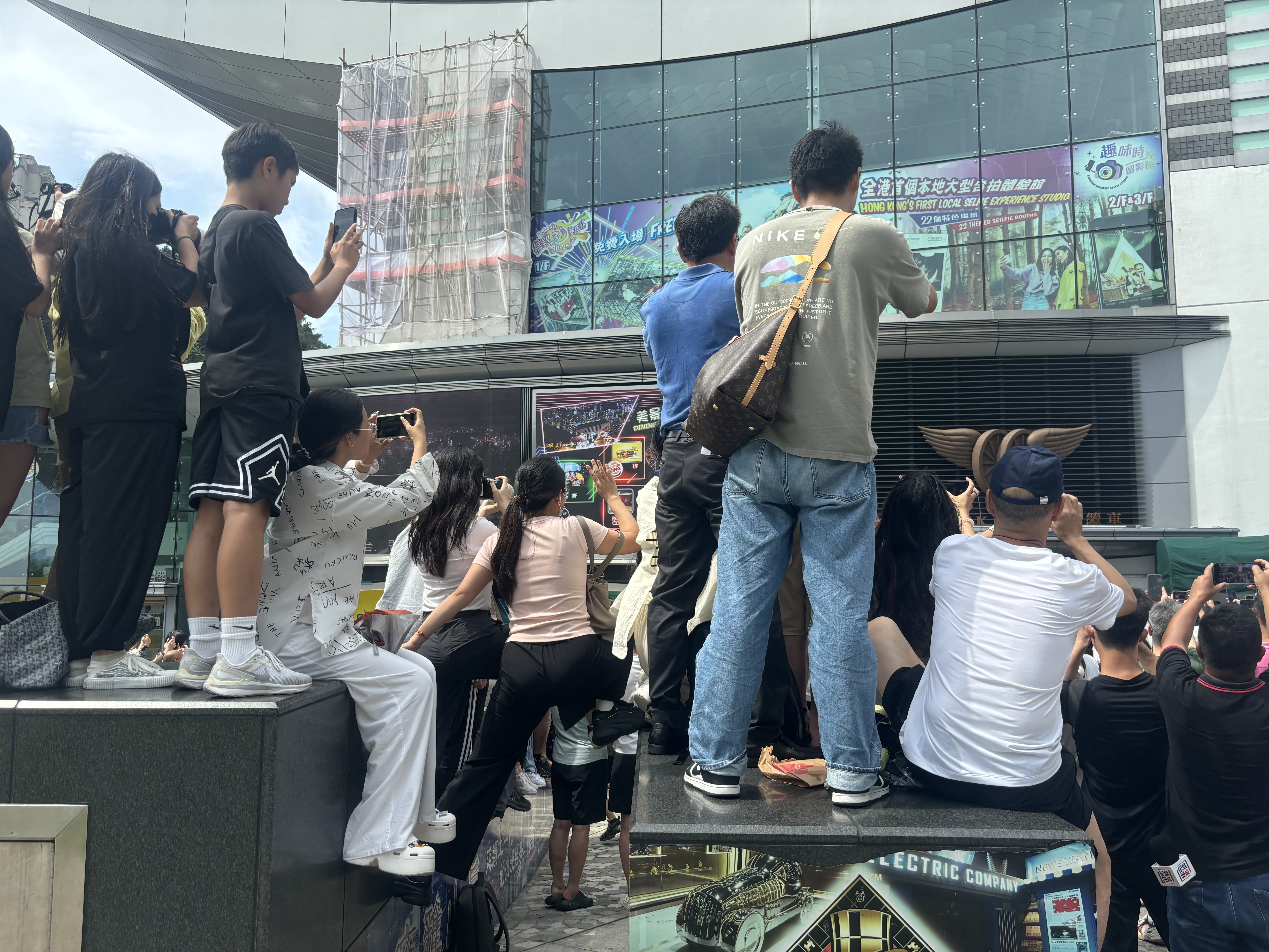 大公文匯全媒體報道,萬眾期待的2024年巴黎奧運會內地奧運健兒代表團昨日(29日)中午抵港,展開為期3天的訪港行程。下午代表團暢遊太平山頂和維港,在運動員還未抵達山頂之時,現場便已圍聚眾多市民,人頭攢動。運動員抵達現場後,更有市民有市民破音大喊:「潘展樂,看這邊!」