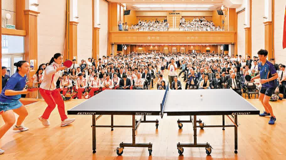 昨日上午9時,全紅嬋、陳芋汐、陳夢等十多名國家隊運動員乘坐旅遊巴到達聖保羅書院。半小時後,一眾運動員與教育局局長蔡若蓮、立法會前主席曾鈺成等嘉賓,於聖保羅書院門前合照。蔡若蓮表示,最令大家興奮的是運動員與同學們切磋乒乓球和舞技,並一起參與互動小遊戲,現場氣氛熱烈,喝彩不斷。她指出,國家隊運動員在巴黎奧運會上,以頑強拚搏的精神與一流的表現,在多個項目中取得突破,創造了輝煌成績,為國家和人民帶來了無比的光榮。她盼望同學們以國家隊運動員為榜樣,不斷挑戰自我,成為更好的自己,將來為國家的發展作出貢獻。