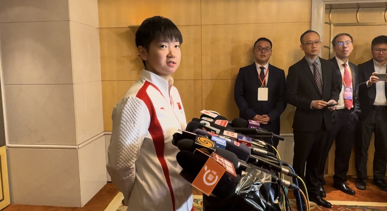 (大公文匯全媒體記者 周傾芫)巴黎奧運內地奧運健兒代表團今日(31日)展開本次最後一日訪港行程。中國乒乓球隊首枚混雙金牌獲得者孫穎莎回應和港隊乒乓運動員的互動時指:「雖然沒有切磋,但是有交流,認為香港乒乓球隊的水平還是有了很大的提高,無論是從訓練設備、條件、後勤保障等等來說,希望都能夠一起為國而戰,目標是一樣的。」