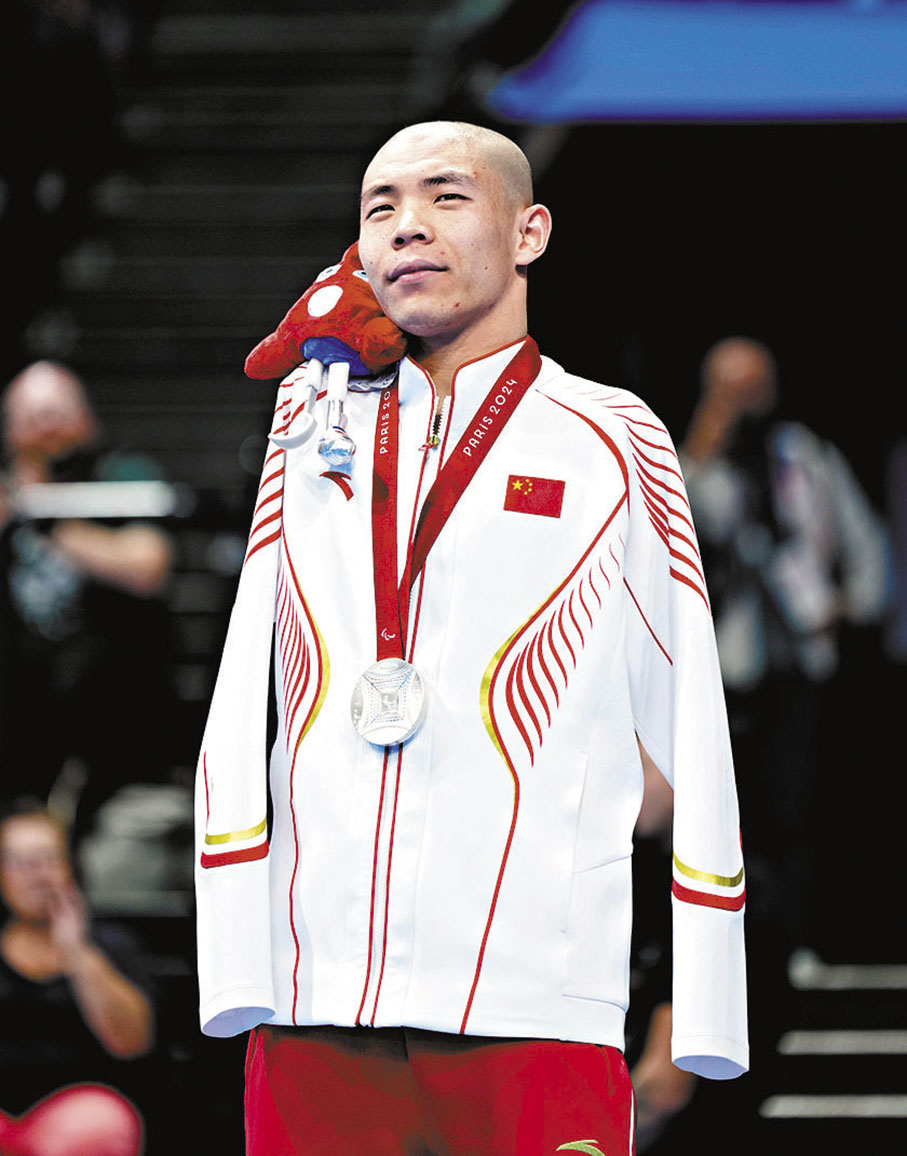 30日晚的巴黎殘奧會男女混合4×50米自由泳接力20分決賽,諸多目光被中國隊最後一棒選手吸引——他不戴泳帽、剃了光頭,抵達終點時用頭奮力撞向池壁,為中國隊鎖定金牌。沒有雙臂,入水不算快,但一進入泳池,他高速拍打的雙腿就如同「渦輪增壓小馬達」,推着他一口氣撞上終點。他就是杭州亞殘運會時拿下3金3銀、走紅網絡的「無臂飛魚」郭金城。