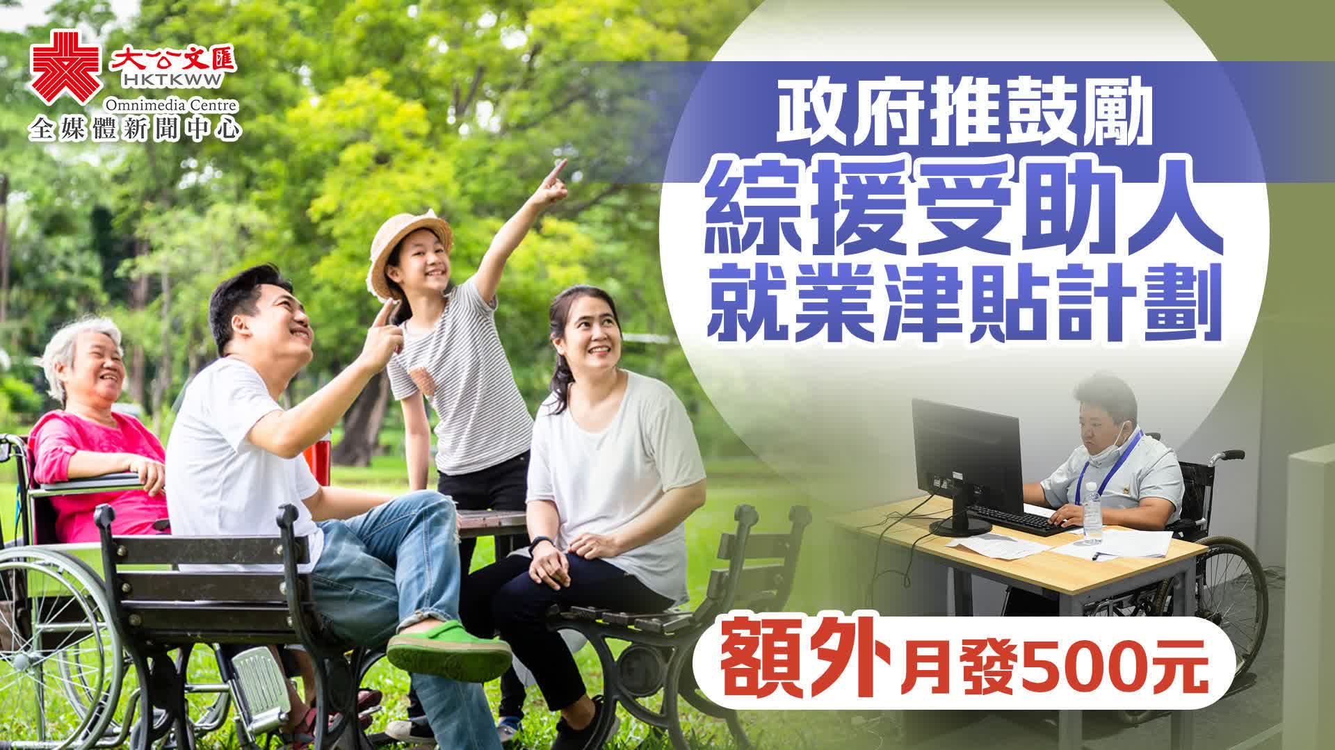 大公文匯全媒體報道,政府今日(9月1日)推出由關愛基金資助的「有勞參與」-「鼓勵綜合社會保障援助計劃殘疾受助人就業津貼」試驗計劃,向領取綜援而有工作的殘疾人士每月發放額外500元的就業津貼。