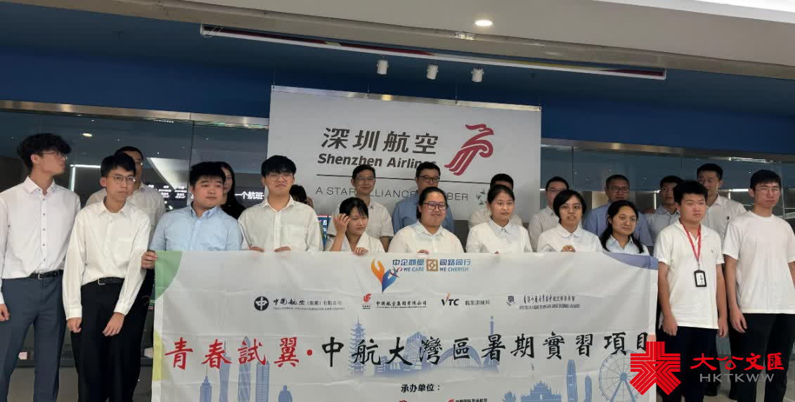 (大公文匯網記者 胡永愛)第二期「青春試翼 中航大灣區暑期實習項目」結業儀式近日在深圳航空總部落下帷幕。本次實習項目旨在凝聚粵港澳大灣區中資航空業界力量,打破青年交流學習壁壘,為12名香港職業訓練局航空相關專業學生提供實踐操練機會,幫助香港青年群體進一步認識、了解、融入國家民航強國建設潮流。