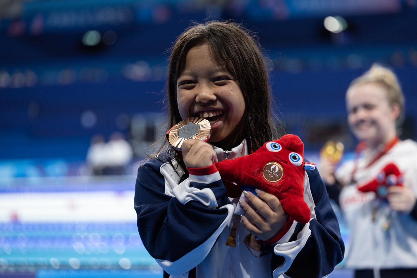大公文匯全媒體報道,年僅14歲的「女飛魚」吳卓恩,昨日(9月1日)在2024年巴黎殘疾人奧運會女子SB6級100米蛙泳賽事中勇奪銅牌,為中國香港贏得今屆殘奧會第二面獎牌。立法會主席梁君彥祝賀吳卓恩奪銅,並代表立法會向她及團隊致以熱烈祝賀。