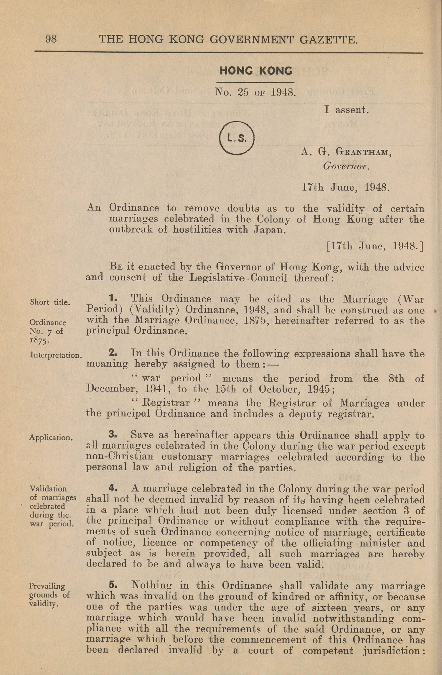 本次展覽不僅包括歷史檔案館館藏,還將展出香港歷史博物館、入境事務處及香港聖公會檔案館的展品。透過展出的「過大禮」物品清單、結婚啟事、以大紅花轎迎娶新娘等圖片及相關展品,帶領觀眾探索香港婚姻制度和習俗沿革,包括:婚姻法例生效前的結婚形式、日佔時期締結婚姻的有效性,以及1971年確立的一夫一妻制。