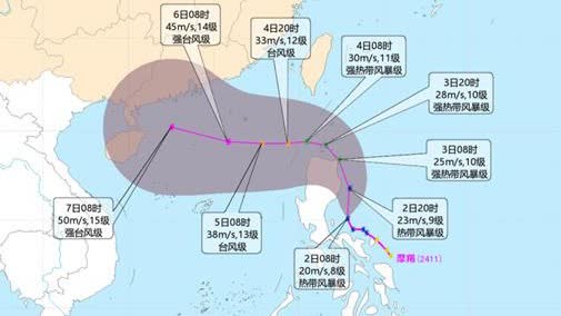預計,「摩羯」將以每小時15~20公里的速度向偏北方向移動,3日開始轉向西偏北方向移動,並將於4日白天進入南海北部海面,爾後向華南一帶沿海靠近,強度逐漸加強,最強可達強颱風級或超強颱風級(45~52米/秒,14~16級)。