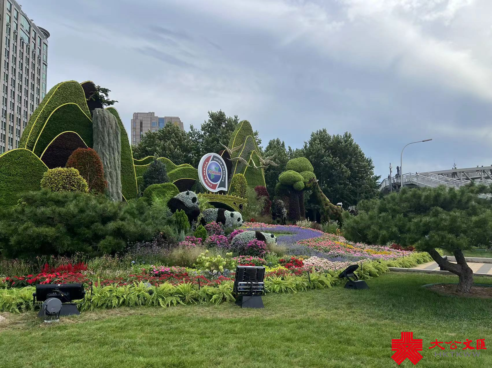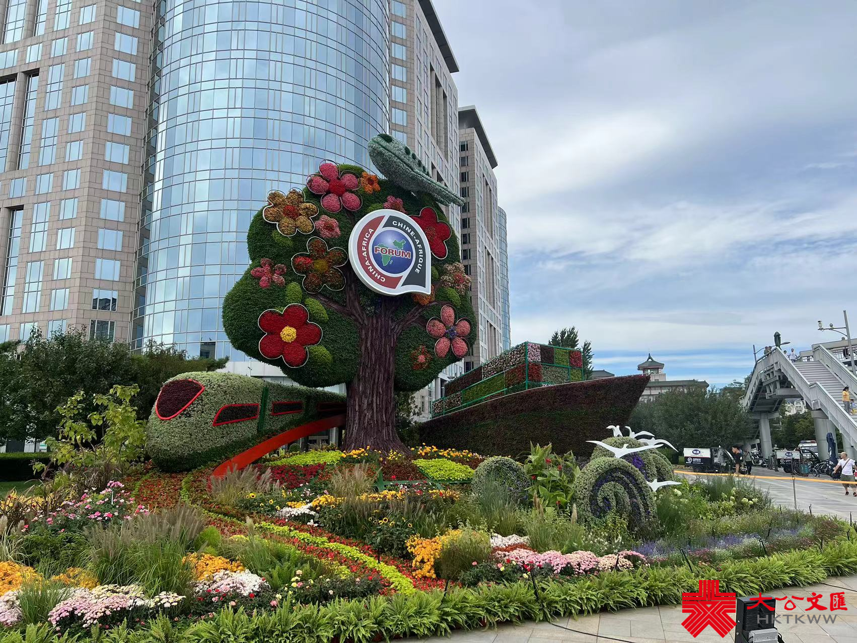 其中,位於長安街東單路口東南的「命運與共」花壇,以高超的園藝技巧還原了憨態可掬的國寶熊貓和來自非洲大草原的斑馬、長頸鹿等動物,寓意中非友誼長存,共同書寫命運與共的新篇章;路口西北的「合作共贏」花壇,將貨輪、飛機、以及「中國名片」高鐵動車組融入了設計,寓意中非秉持互聯互通的友好合作精神,共同建設美好未來;位於西單路口西北的「美好藍圖」花壇以科技園區為設立理念,展示了腦機接口技術、智能機器人、無人送貨車等尖端科技產品,寓意推動中非開展科技創新合作,共繪高水平中非命運共同體新圖景;而「共同發展」花壇則以首都花園商圈為主景,配以非洲特色農產品以及工藝品等,寓意中非通過貿易互利合作,展現蓬勃的經濟活力。