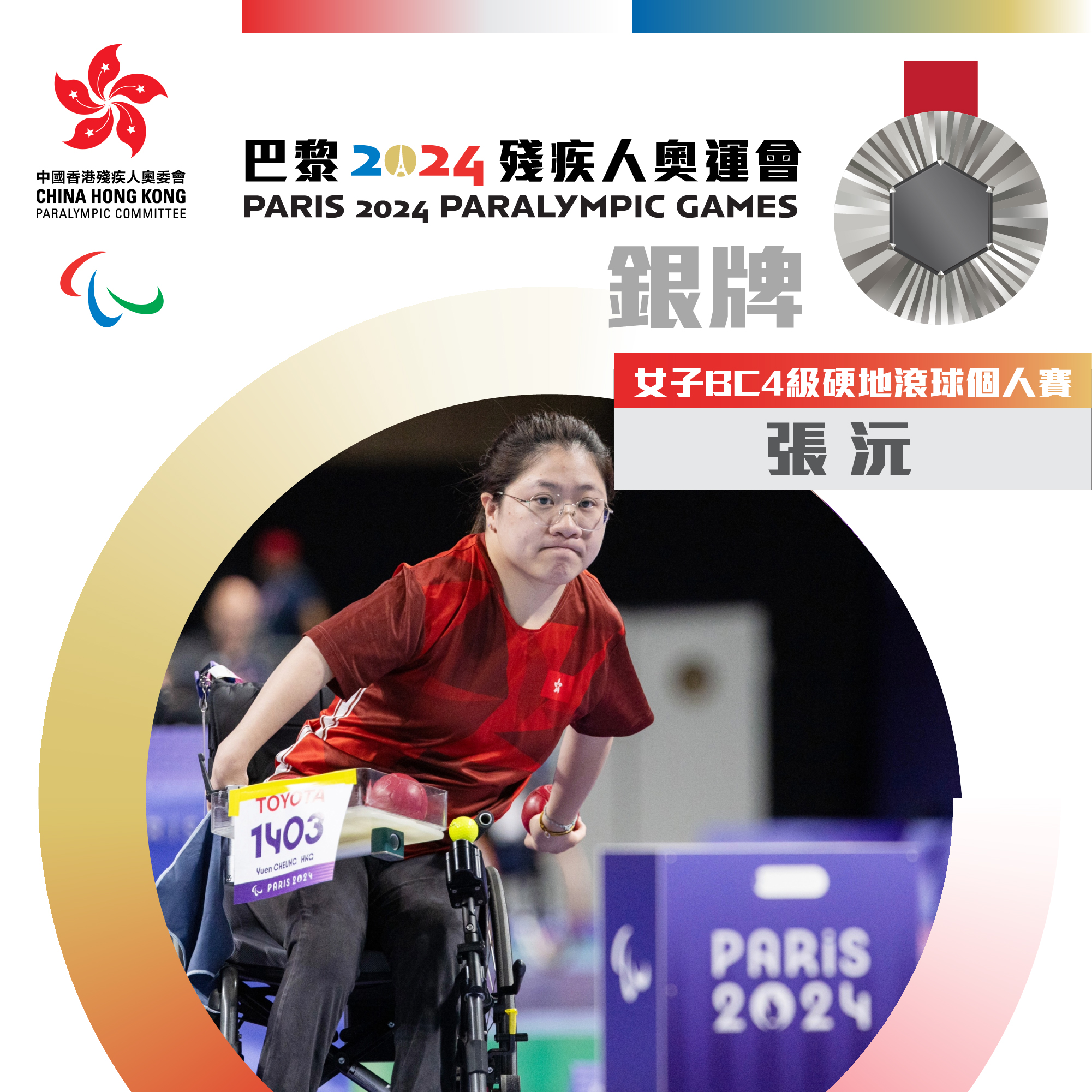 中國香港硬地滾球代表隊目前於巴黎殘奧奪1金1銀。連計游泳項目早前的奬牌,中國香港代表隊今屆巴黎殘奧目前累計奬牌數目有1金2銀1銅。