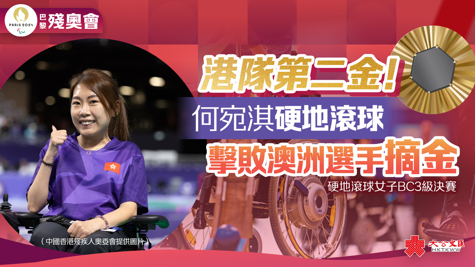 大公文匯全媒體報道,中國香港硬地滾球代表隊再有殘奧奬牌進賬!30歲「三朝元老」何宛淇今日(3日)凌晨出戰硬地滾球女子BC3級決賽,面對澳洲球手Jamieson Leeson,以4比2擊敗對方奪金,運動生涯首次站上殘奧頒奬台最高點。