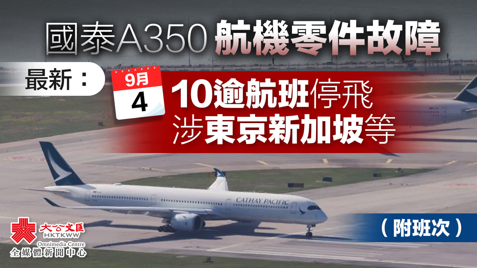 根據國泰最新公布,明日(4日)也將另有逾10班航班停飛,涉及東京、大阪、台北及新加坡航線。
