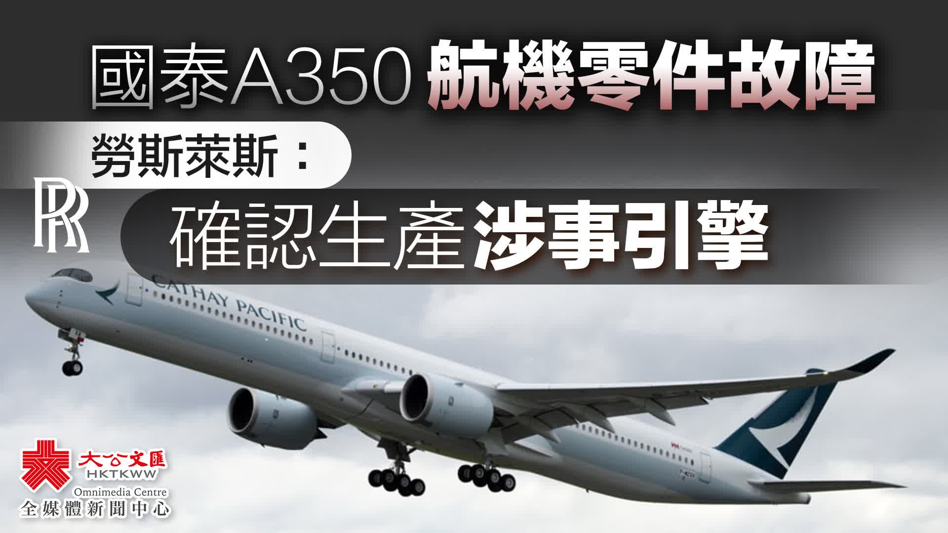 A350航機的引擎生產商勞斯萊斯回覆查詢時表示,確認涉事飛機的XWB-97引擎來自勞斯萊斯。勞斯萊斯指,由於香港方面已根據國際民航組織公約附件13作出調查,根據附件限制,勞斯萊斯不便告知具體零件信息。