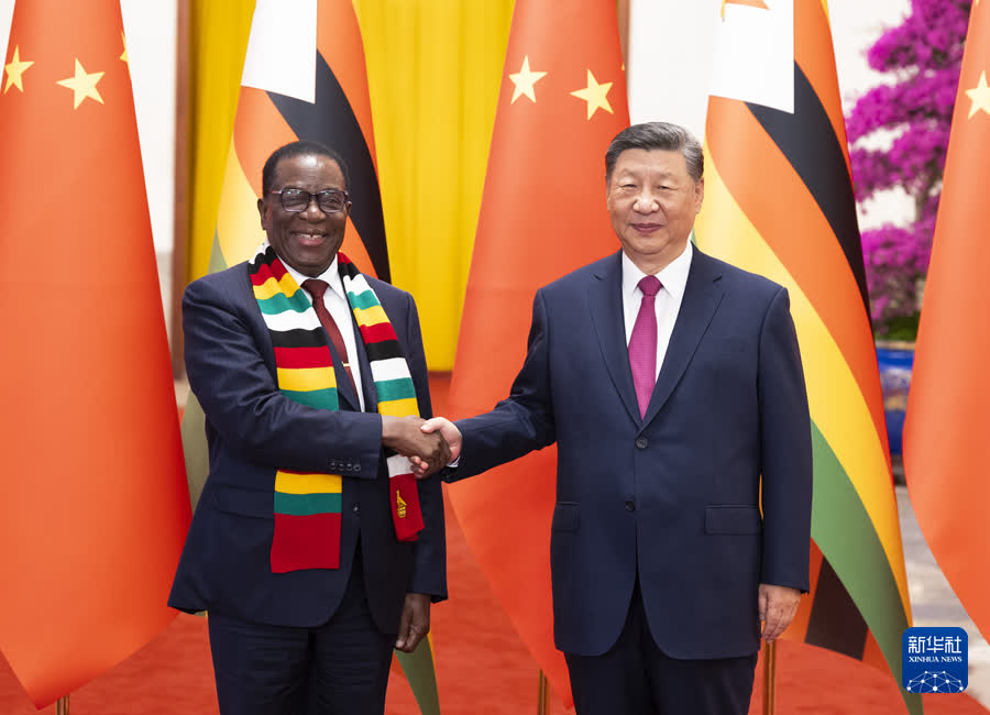 9月3日下午,國家主席習近平在北京人民大會堂同來華出席中非合作論壇北京峰會並進行國事訪問的津巴布韋總統姆南加古瓦舉行會談。新華社