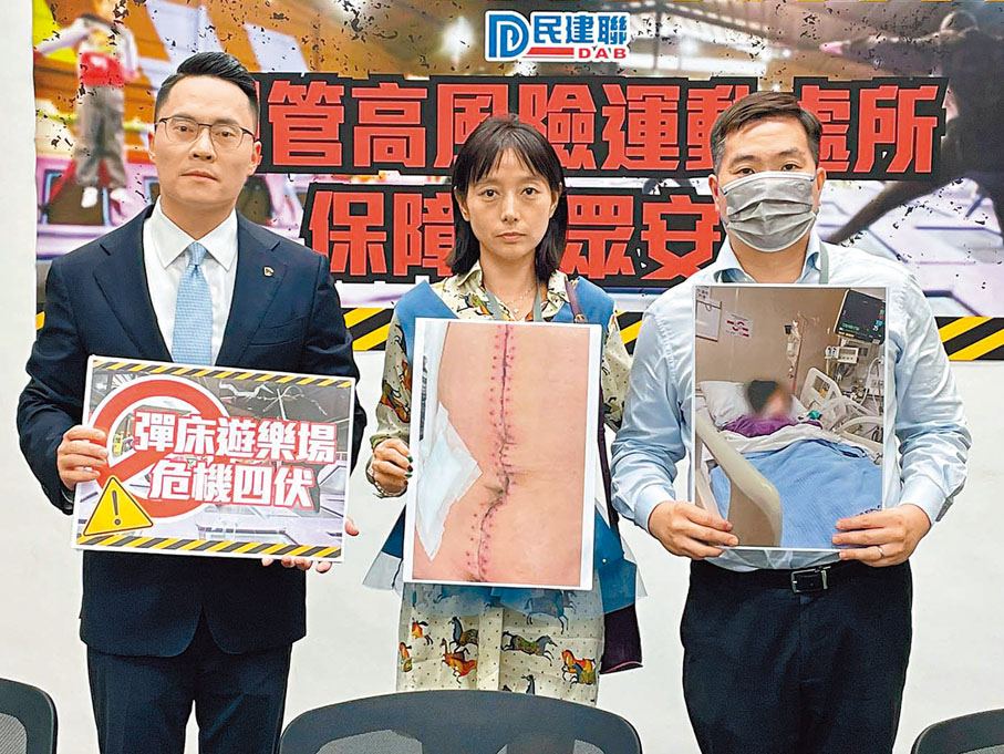 (香港文匯報記者 張弦、王僖)近年香港出現不少有彈床、飛索、高空鞦韆等高危活動的遊樂場,雖然好玩但有各種潛在危機。有旅客去年在香港一間室內彈床遊樂場遊玩時發生嚴重意外,導致內臟大出血,最終要切除一邊腎臟保命,事主家人事後視察發現場所安全設施存在極大問題,邊緣防護膠條嚴重磨損,惟在目前法例下無法向涉事公司追究責任。香港立法會議員梁熙昨日引述香港醫管局數據顯示,每年約有80宗與彈床有關的受傷個案,潛藏很大不能忽視的危機,建議特區政府盡快將高風險運動處所納入條例規管,提升安全水平。