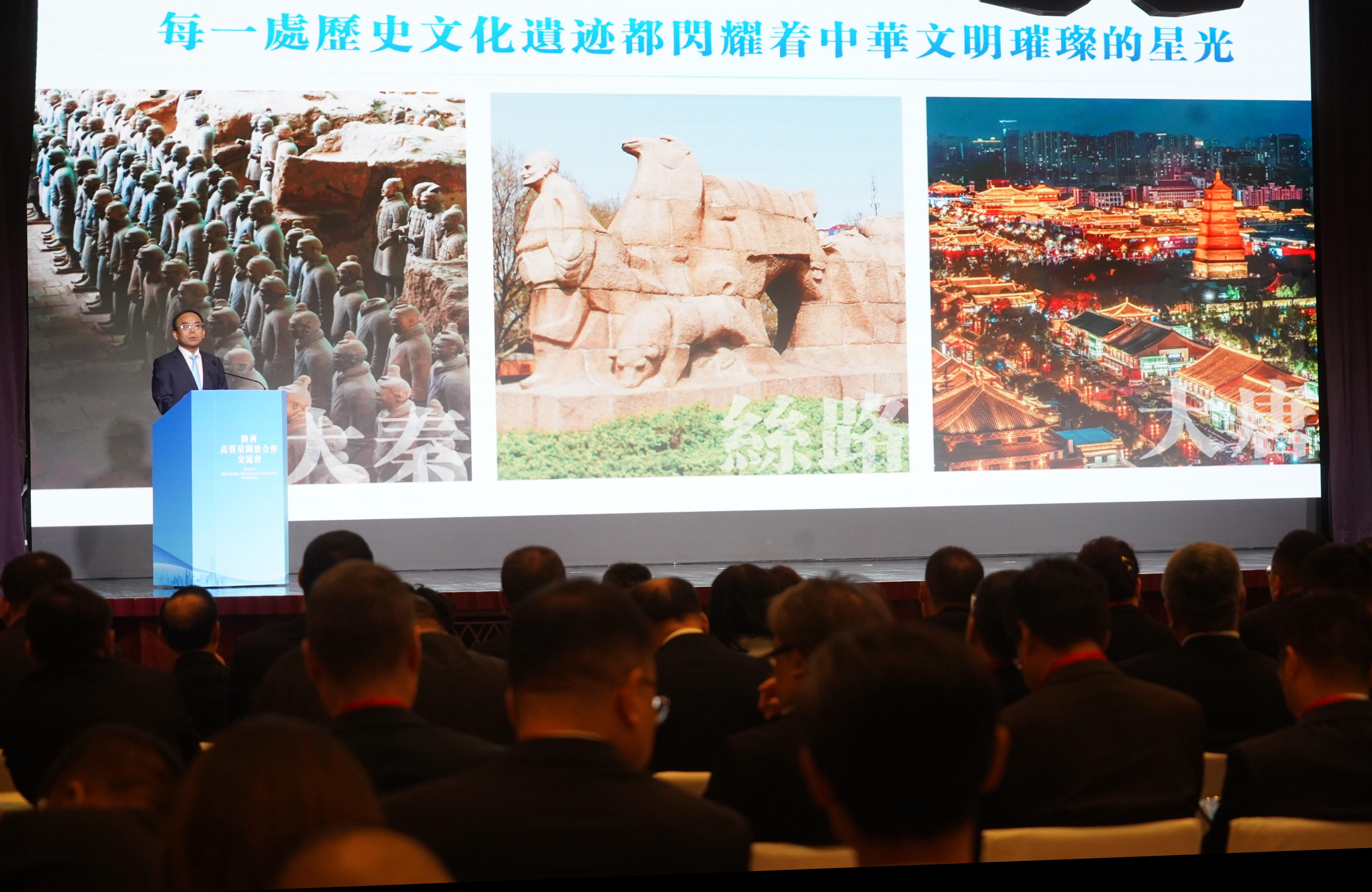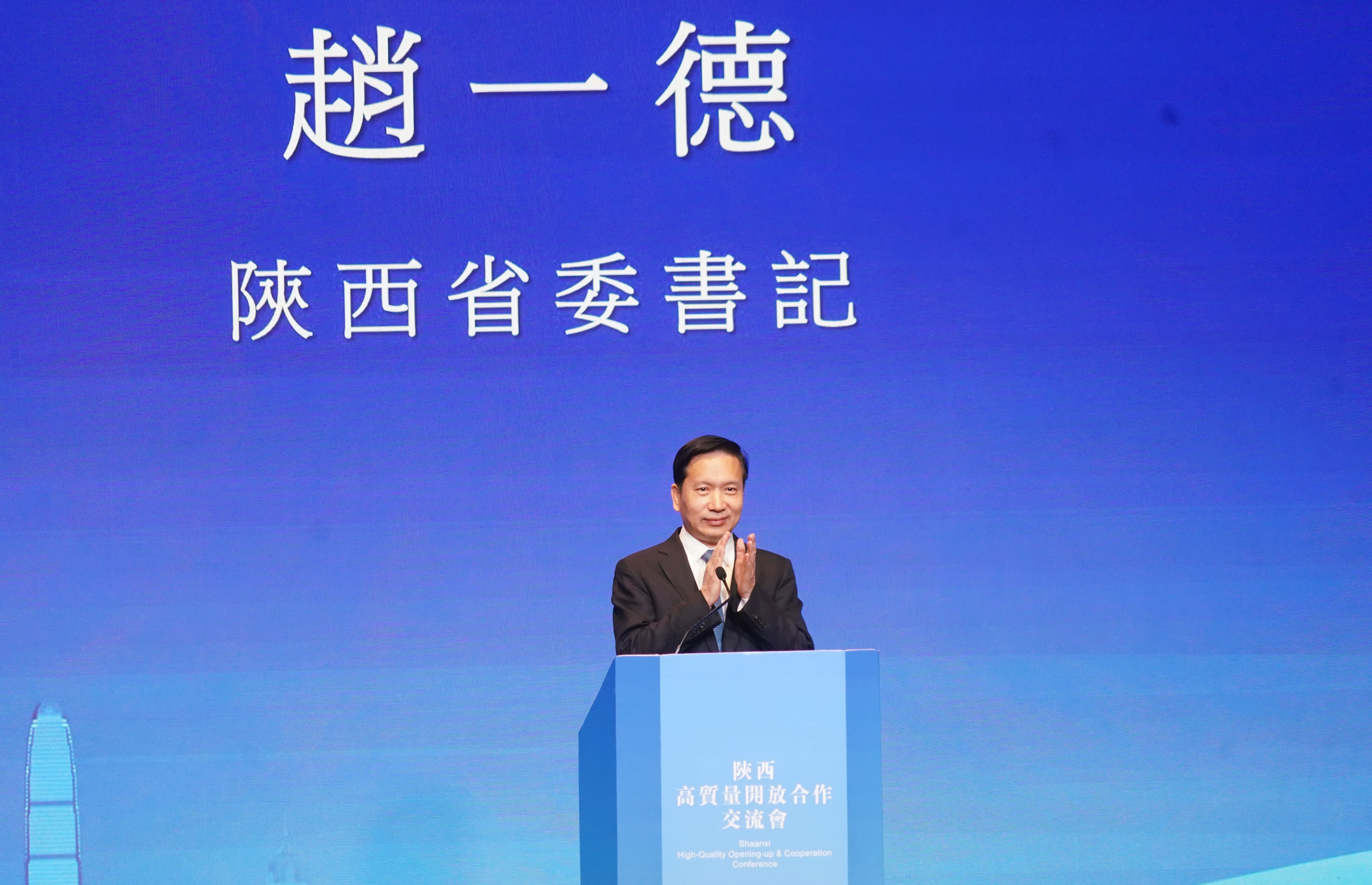 陝西省委書記趙一德在陝西高質量開放合作交流會上致辭時指,陜西的發展始終離不開香港各方面的支持,陝西將繼續借力出海,與香港在產業、金融、科技、文旅、生態等各方面進行深入合作。他還歡迎各界朋友在赴西安參加第八屆絲綢之路博覽會,共敘友誼,共謀發展。