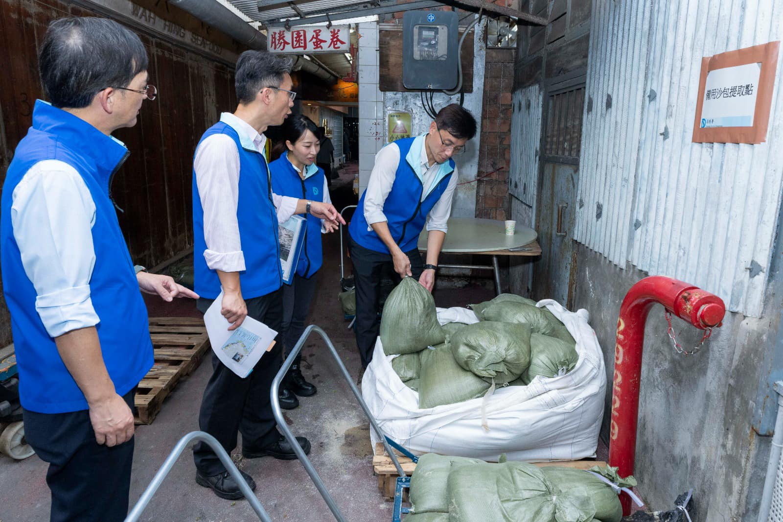 莫永昌指出,渠務署已就全港26個沿岸低窪和當風地點啟動相關的緊急行動計劃,包括在大澳、鯉魚門和三門仔等地安裝擋水板,並在各區提供超過11000個沙包供市民使用。