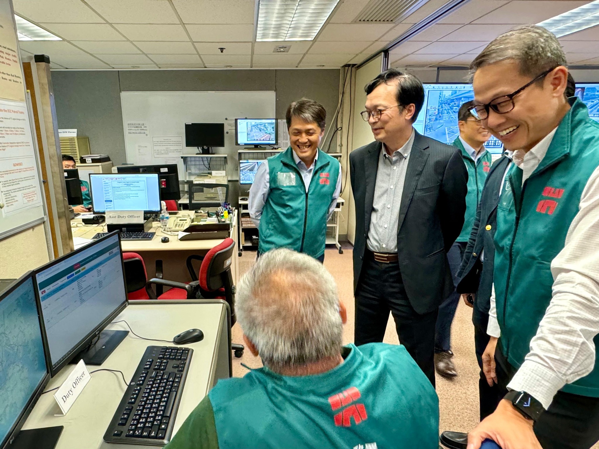 大公文匯全媒體報道,颱風「摩羯」襲港,八號烈風或暴風信號現正生效。運輸及物流局與轄下部門做好準備工作,前線人員於風暴期間緊守崗位,全面保障海陸空交通安全。今日(9月5日)下午,運輸及物流局副局長廖振新和政治助理陳閱川到訪港島區路政署緊急控制中心,了解部門應對風暴的預防、應急及善後工作。