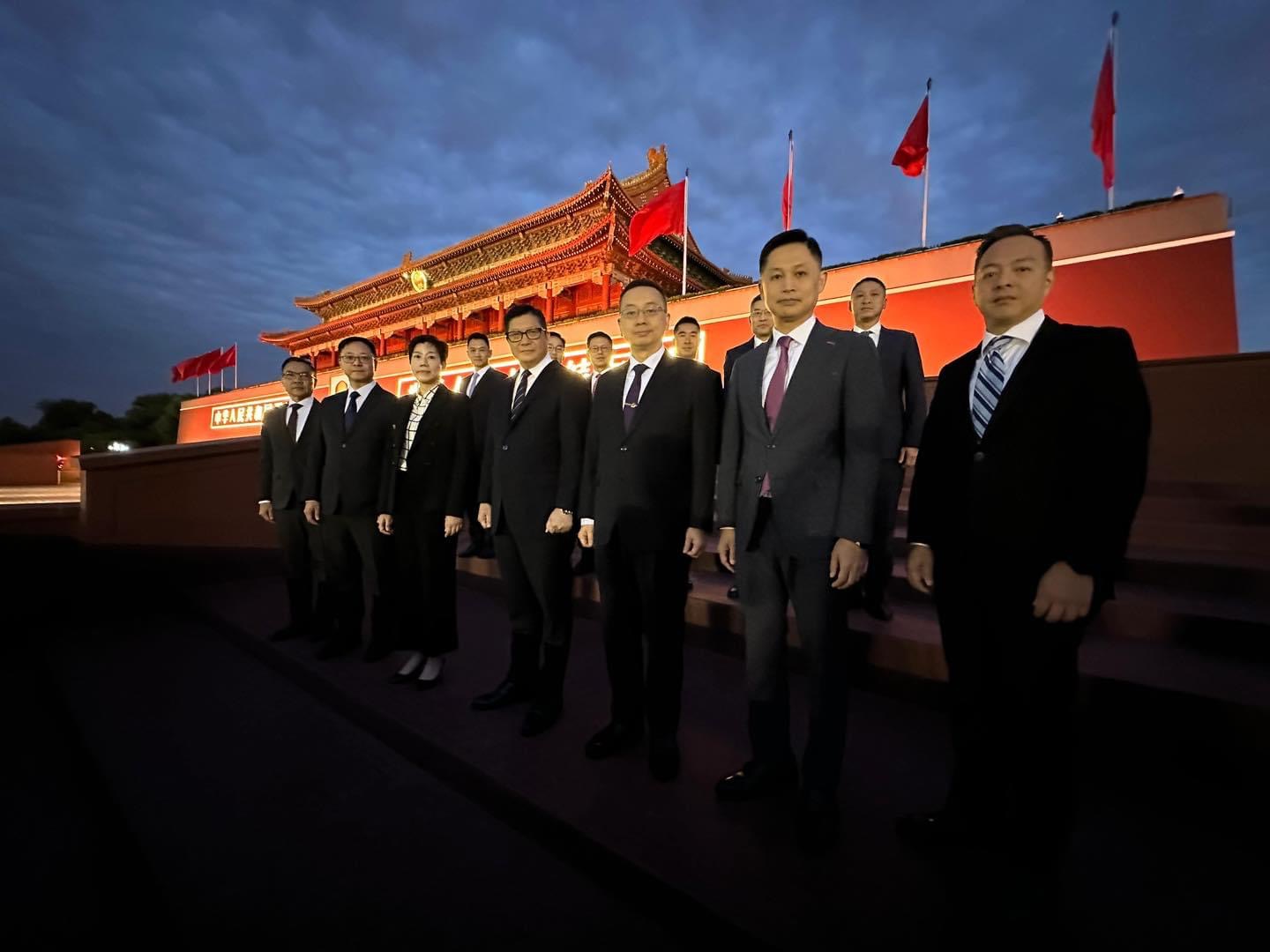 大公文匯全媒體報道,保安局局長鄧炳強、海關關長何珮珊及一眾紀律部隊首長今日(6日)上午於北京天安門廣場觀看升旗儀式。