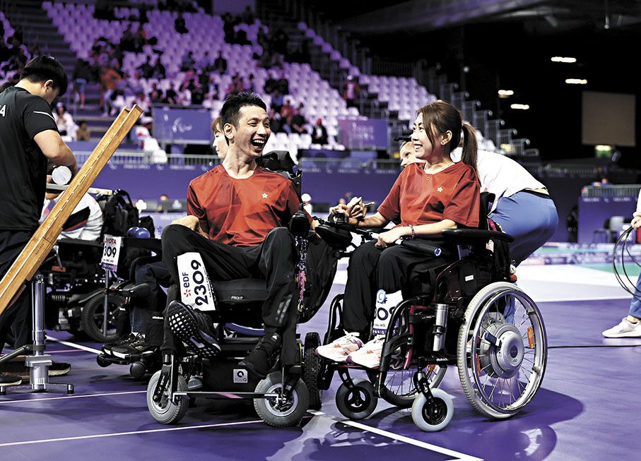 (香港文匯報 記者 葉詩敏)在巴黎殘奧會個人賽奪金的何宛淇夥拍謝德樺出戰硬地滾球混合雙人賽BC3級決賽,以5:3擊敗韓國組合奪得金牌,連同隊友龍子健日前在男子BC1級個人賽封王,打破香港硬地滾球隊在2004年雅典殘奧寫下的單屆兩金紀錄。「只要相信,沒有不可能。」今屆累積兩金的何宛淇如是說。殘疾運動員在賽場上奮力拚搏、挑戰極限、超越自我,他們比任何人都更鬥志昂揚,一往無前,才踏上殘奧頒獎台。這天,何宛淇在奮戰逾十年終在第三屆殘奧兩度登峰,隊友梁育榮亦以一面雙人賽銀牌,為自己力保A+精英資助,延續硬地滾球生涯。他們以無人知曉的血淚告訴我們,一切離不開堅持信念。