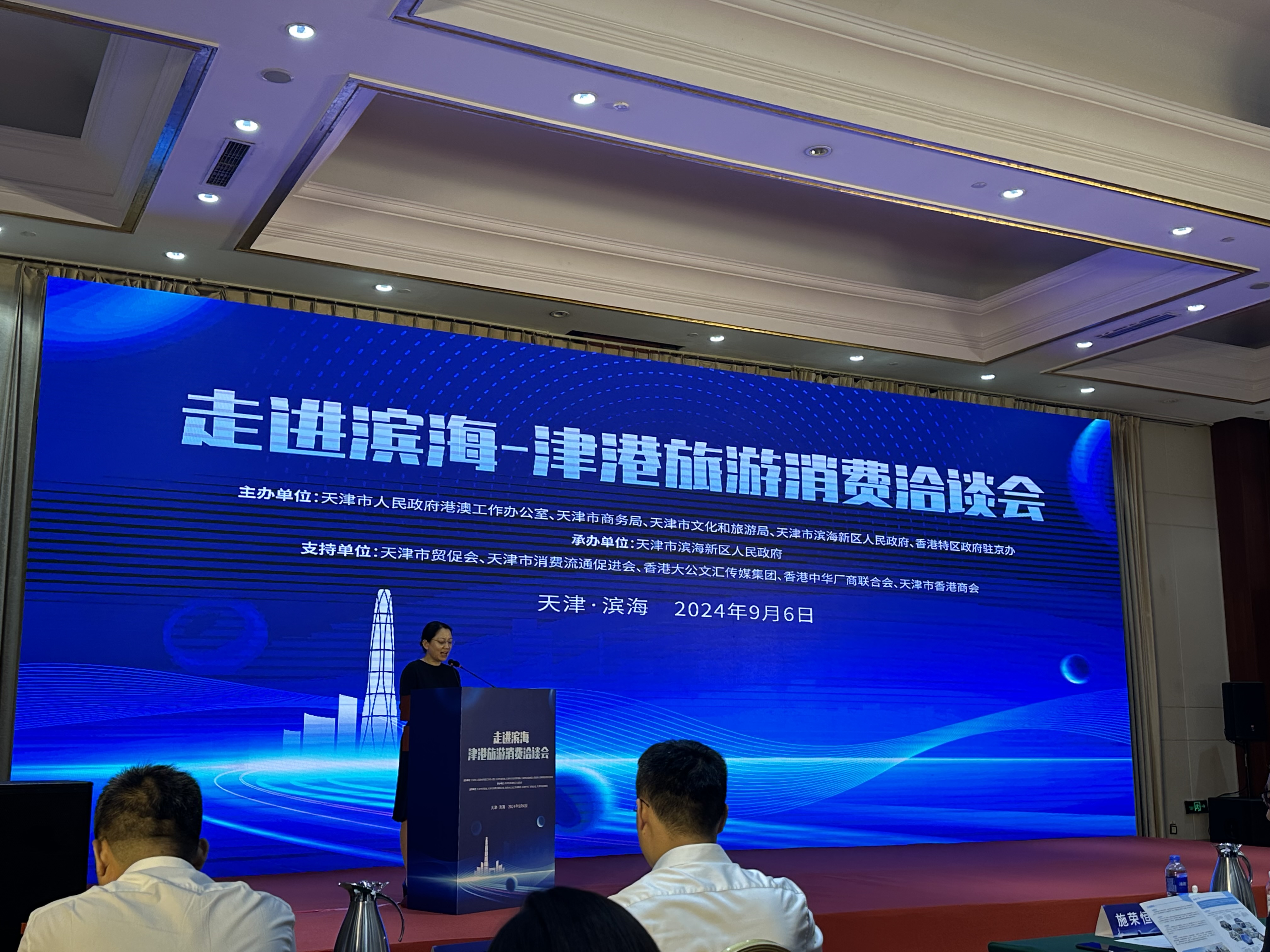 活動現場,濱海新區人民政府、天津市商務局、濱海新區文化和旅遊局、濱海新區商務和投資促進局向來訪的香港嘉賓和企業家代表介紹天津市培育國際消費中心城市建設情況和相關支持政策,推介天津文化和旅遊最新情況及招商政策,組織津港兩地企業進行經貿文旅合作洽談,助力擴大津港在經貿、文旅等領域交流合作。