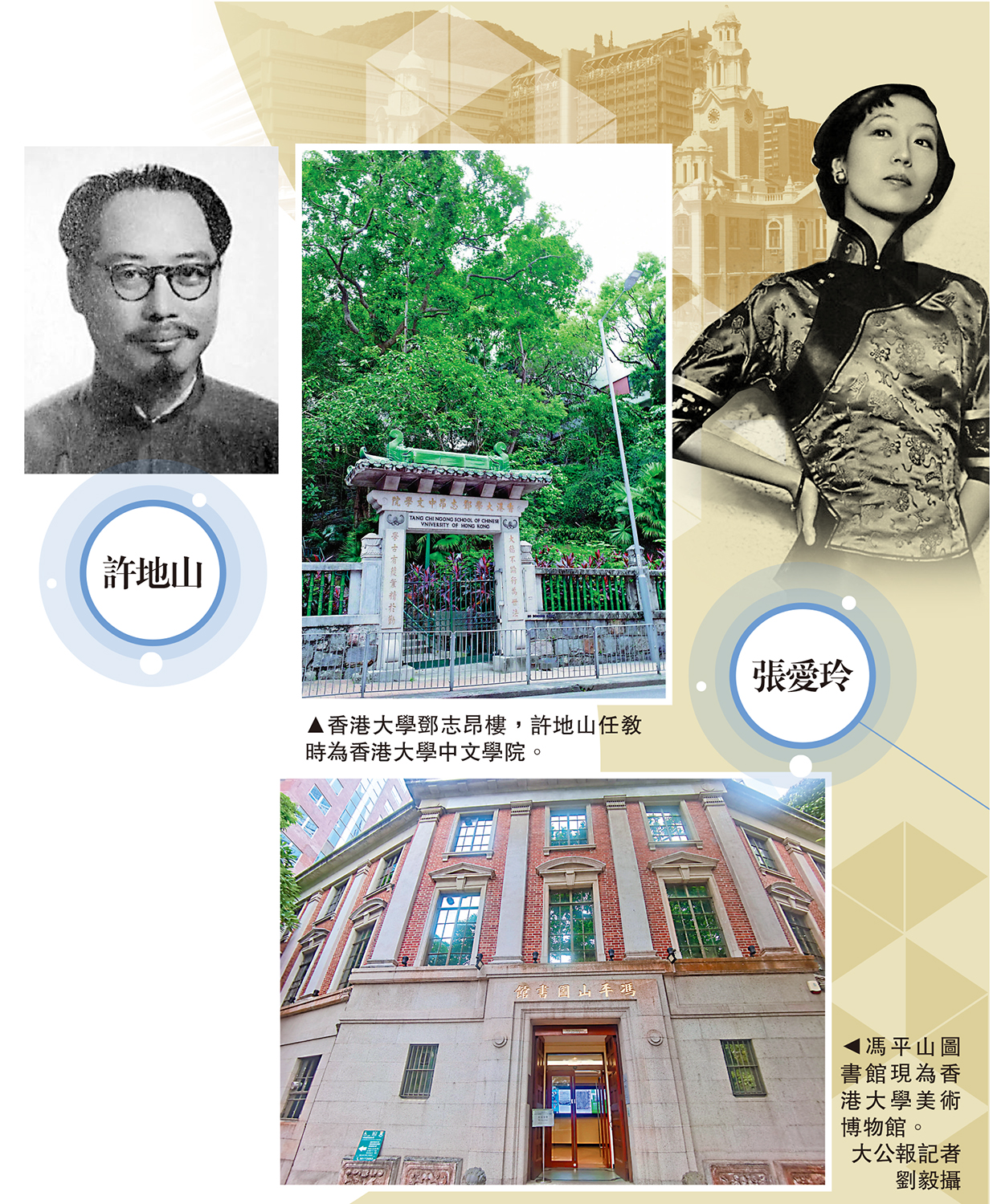 文人之間的交集,也成為後世津津樂道的焦點。張愛玲可以說是許地山的學生,她在香港大學留學期間,就有修讀過許地山的課。張愛玲於1939年8月29日在香港大學文學院報到註冊,住在寶珊道8號聖母堂,這裏也是當時的香港大學女生宿舍。