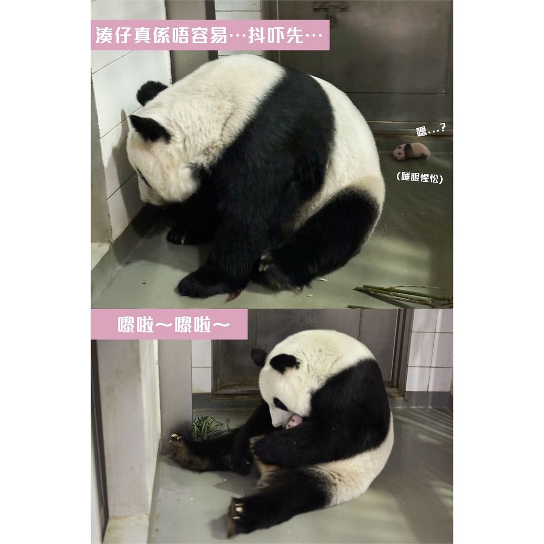 大公文匯全媒體報道,海洋公園今日(8日)發布大熊貓盈盈同龍鳳胎BB的最新相片。「新手媽媽」盈盈疑似「湊仔太攰」,要趁BB睡覺時「面壁唞氣」。BB醒後盈盈又立即抱起仔仔氹瞓覺。海洋公園配文「相信咁多位媽媽都好有同感」引發網民同情及熱議,大讚盈盈「200%好媽咪」「為全世界媽媽鼓掌,盈盈有雙倍掌聲,因為要湊雙胞胎家姐同細佬」。