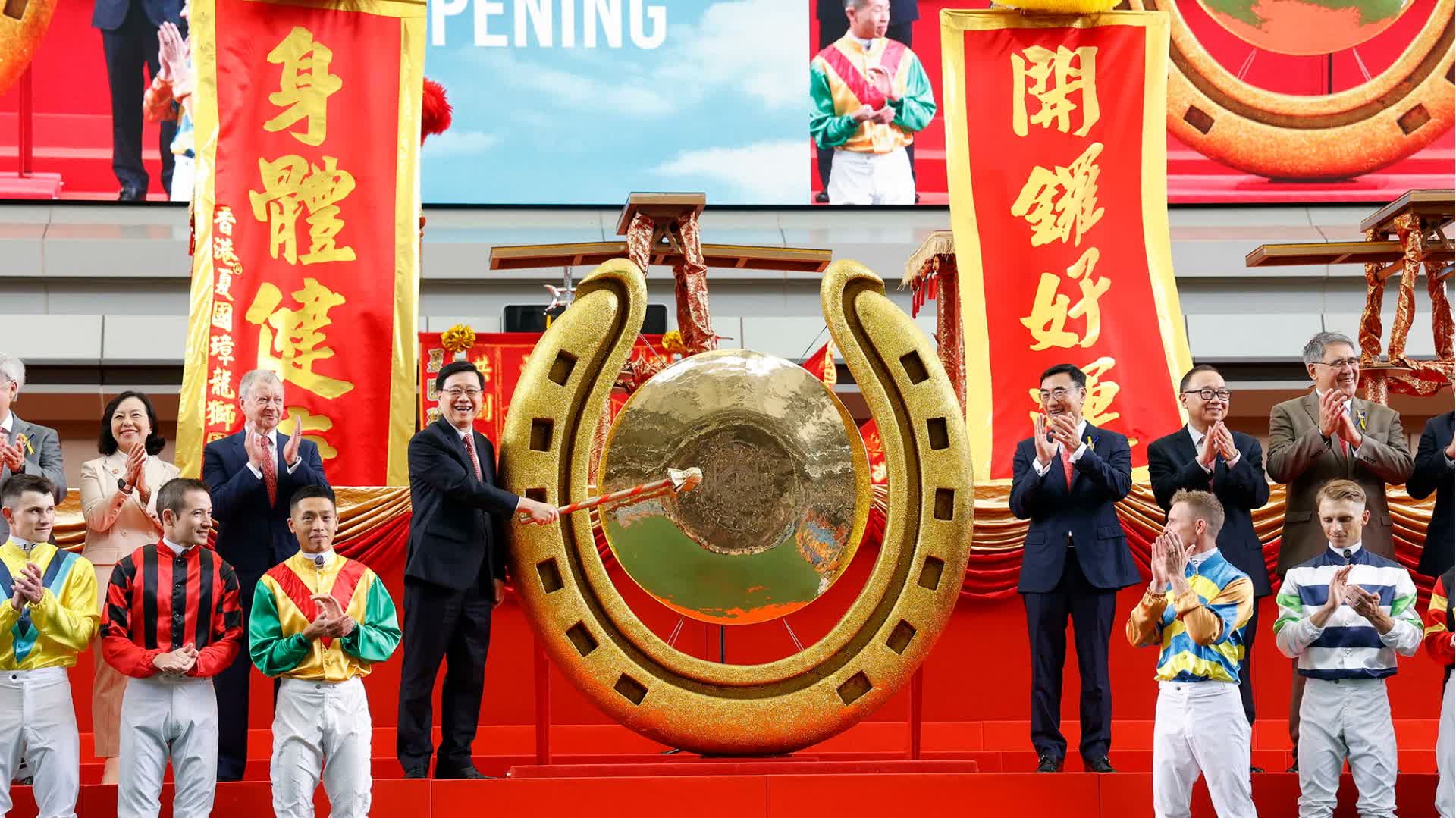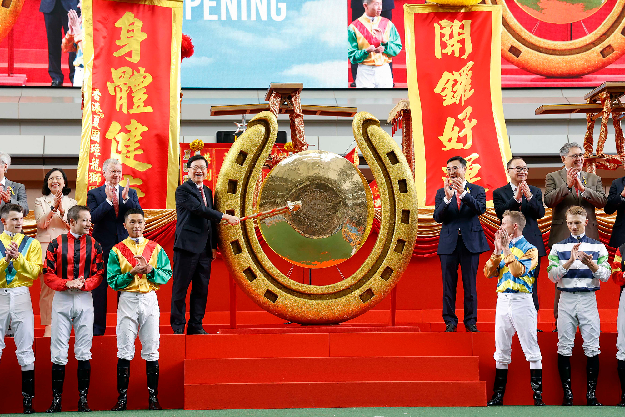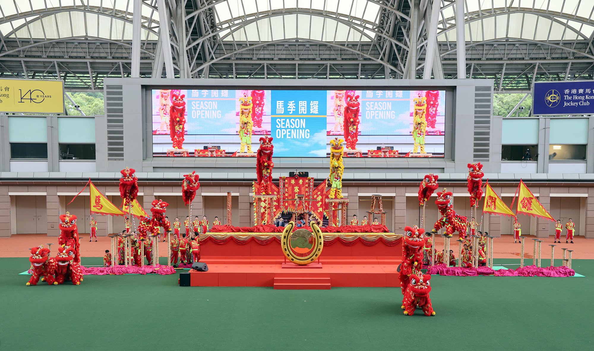 新馬季開鑼日的開幕儀式在沙田馬場馬匹亮相圈舉行,行政長官李家超及馬會主席利子厚一同主持醒獅點睛儀式,精彩的醒獅匯演隨即帶動現場氣氛。一眾騎師也出席開幕典禮,祝願馬迷新馬季事事順利。李家超揮動大槌,敲響銅鑼後,標誌新馬季展開。