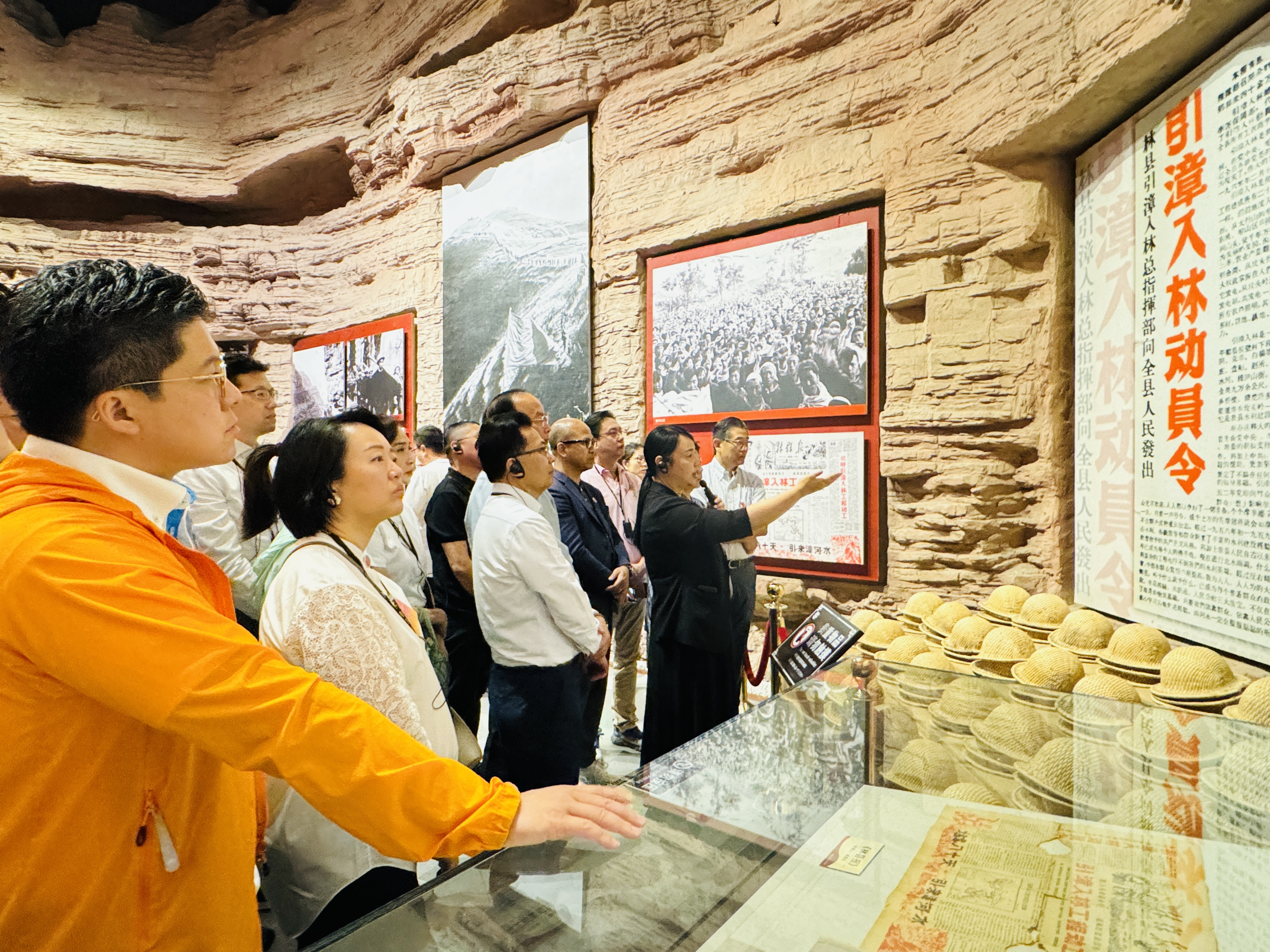 紅旗渠,這座位於太行山脈的宏偉水利工程,以其引漳河水入林州的壯舉,被稱為「人工天河」,並被譽為「世界第八大奇跡」。而今日視察團也得到林州市副市長李蕾作為講解員陪同。李蕾是土生土長的林州人,家中三代都投身於紅旗渠的建設之中,而她的母親是紅旗渠精神的首批講解者。在紅旗渠的故事薰陶下成長的她,將這份精神深植於心。在李蕾的生動講解下,視察組成員細緻觀察、認真聆聽、深刻體驗並感悟了紅旗渠的精神,理解了為什麼要修、敢修、能修紅旗渠。在中國共產黨的堅強領導下,林縣人民以「為有犧牲多壯志,敢教日月換新天」的豪情壯志,抱着對未來生活的美好嚮往,克服「山窮、水窮、地窮」的自然環境不利條件,靠着一錘、一釺、一雙手,十年奮戰修建水渠、創造了人間奇跡,結束了林縣人民祖祖輩輩缺水盼水的歷史,為提高群眾生活和發展工農業生產創造了有利條件。