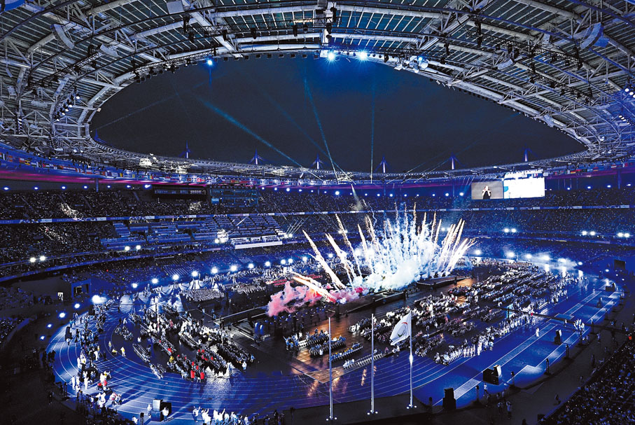 運動員們離開座位,「暢遊」在整片場地,吉祥物「弗里熱」隨處互動。持續12天的盛會在派對中結束。