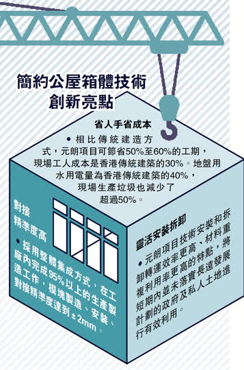 她表示,項目減少建築垃圾產生、降低建造成本,地盤用水用電量為傳統建築的40%,現場生產垃圾也減少逾50%。生產過程嚴格的同時,通過科技賦能,提升設計效率,並以自動化、智慧化設備代替人工作業,項目運用了大量機器人。