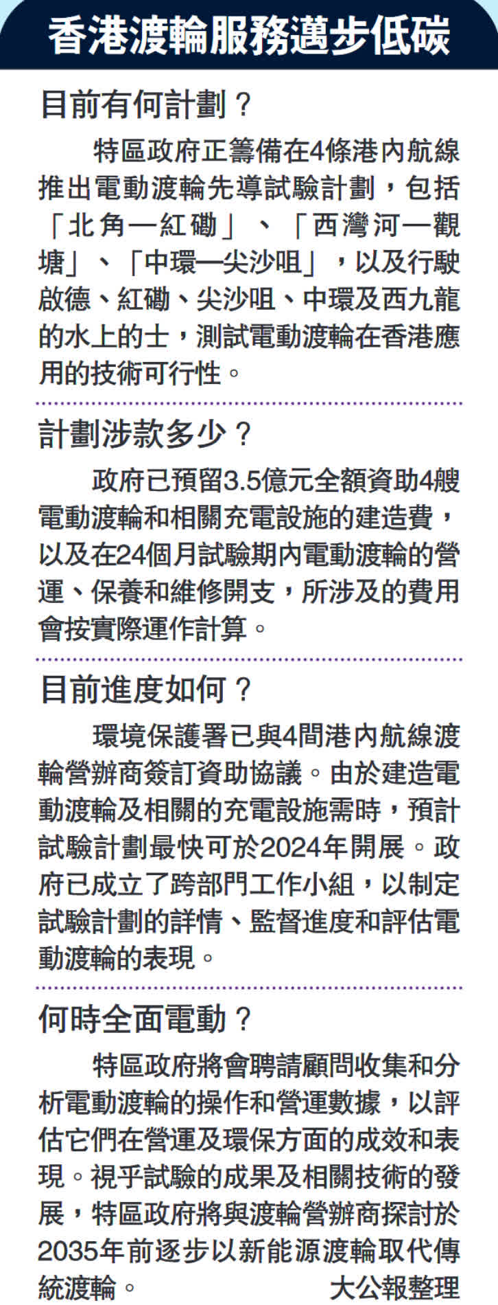 據介紹,「新明珠39」號是香港特區政府2019年提出的的電動渡輪先導試驗計劃中的第一艘電動渡輪。公開資料顯示,試驗計劃將有四條維港港內渡輪航線參與,其中由新渡輪營運的航線為來往北角至紅磡的航線。
