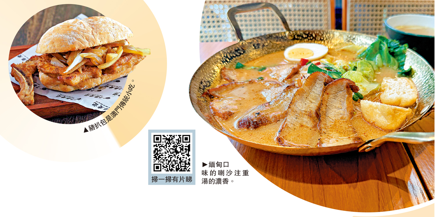當三盞燈喇沙湯米線端上桌時,不禁開始思考「三盞燈」與喇沙米線之間的關係。三盞燈是澳門東南亞人聚居之地,緬甸的喇沙更是當地有名的美食。澳門蝦仁、喇沙加入香茅、椰汁為湯底調味,配上秘製麻辣汁感受鮮美鹹香同時帶點香辣口感。而濃郁的喇沙湯搭配油條、叉燒、生菜、熟雞蛋,賦予食材新滋味。被問及緬甸喇沙的不同之處,Fanson表示,「澳門有很多喇沙的餐廳,我們的喇沙和星馬泰的味道略有不同,更偏緬甸的口味,就是更注重喇沙湯的濃香,而不是葉子的香味。」