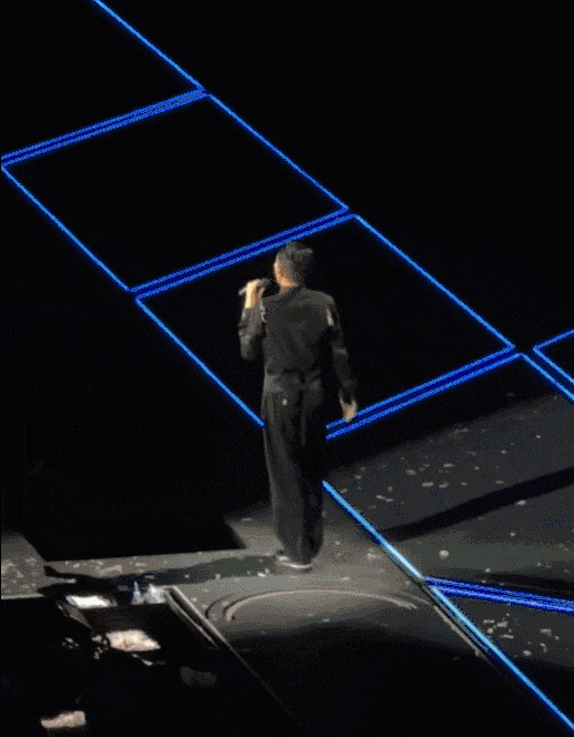 在北京站時,劉德華又在升降台上差點踩空。現場畫面顯示,劉德華站在一個面積不大的圓形升降台上,邊走邊唱時大概忘記了自己正站在台面上,險些一腳踩空。幸好他及時退回,用手抓緊了扶手,避免了事故發生。