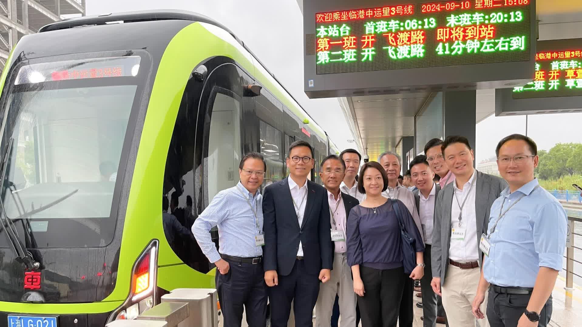 立法會交通事務委員會考察團今日下午抵達上海,隨即前往視察臨港氫能中運量T3線的設計和運作。該區的公共交通採用數字軌道系統,即在路面鋪設磁釘,以電磁標記技術和透過車底感測器,對車輛作實時準確定位和控制列車車輪的轉動方向。