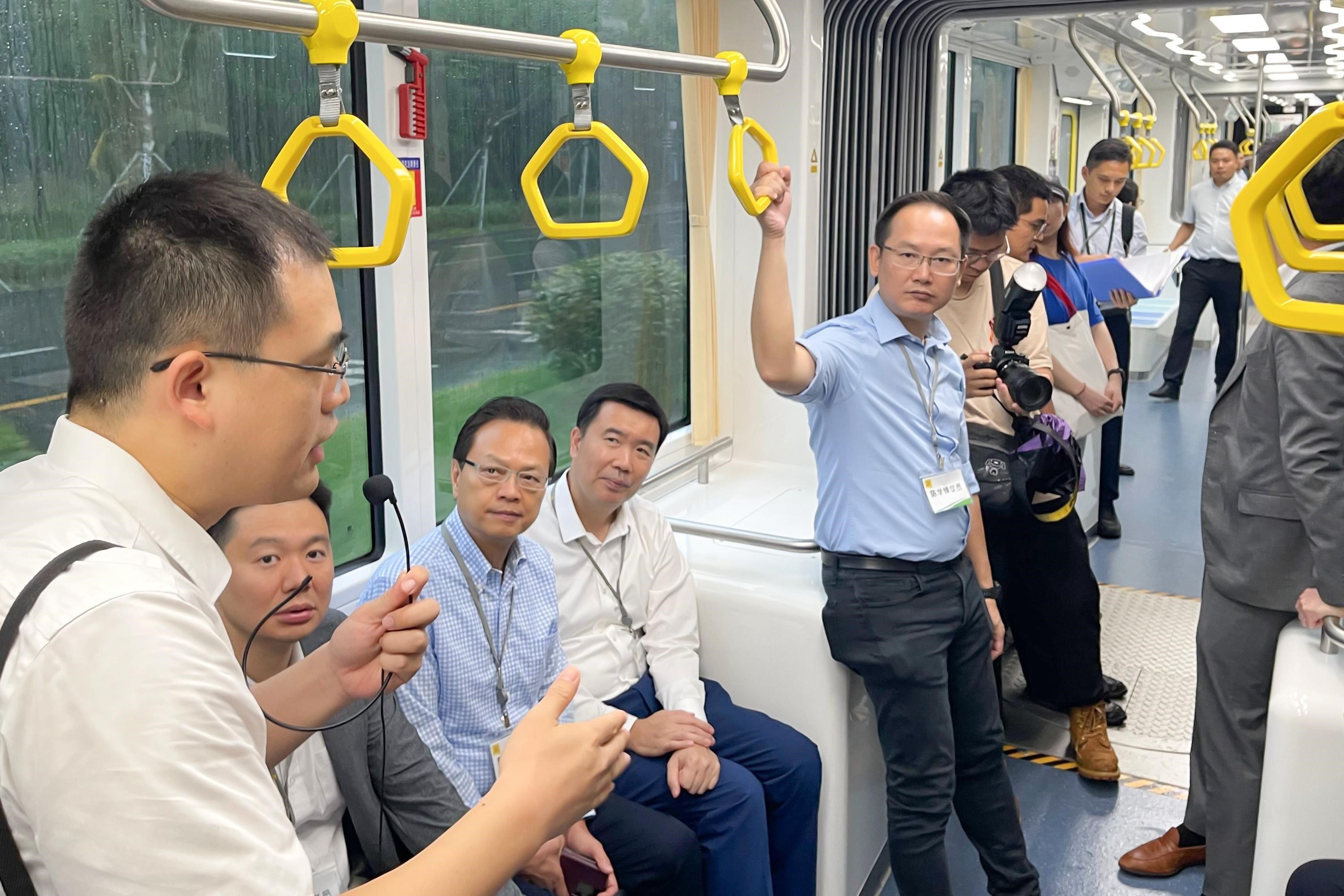 議員其後試乘數字軌道氫能列車,體驗新能源車輛如何為市民提供低碳高效的智慧公共交通服務。議員察悉T3線於去年開通營運,是應用氫能源的公共交通線,其特色是結合區內的綠色交通和臨港規劃,以推動氫能源汽車產業鏈的發展。