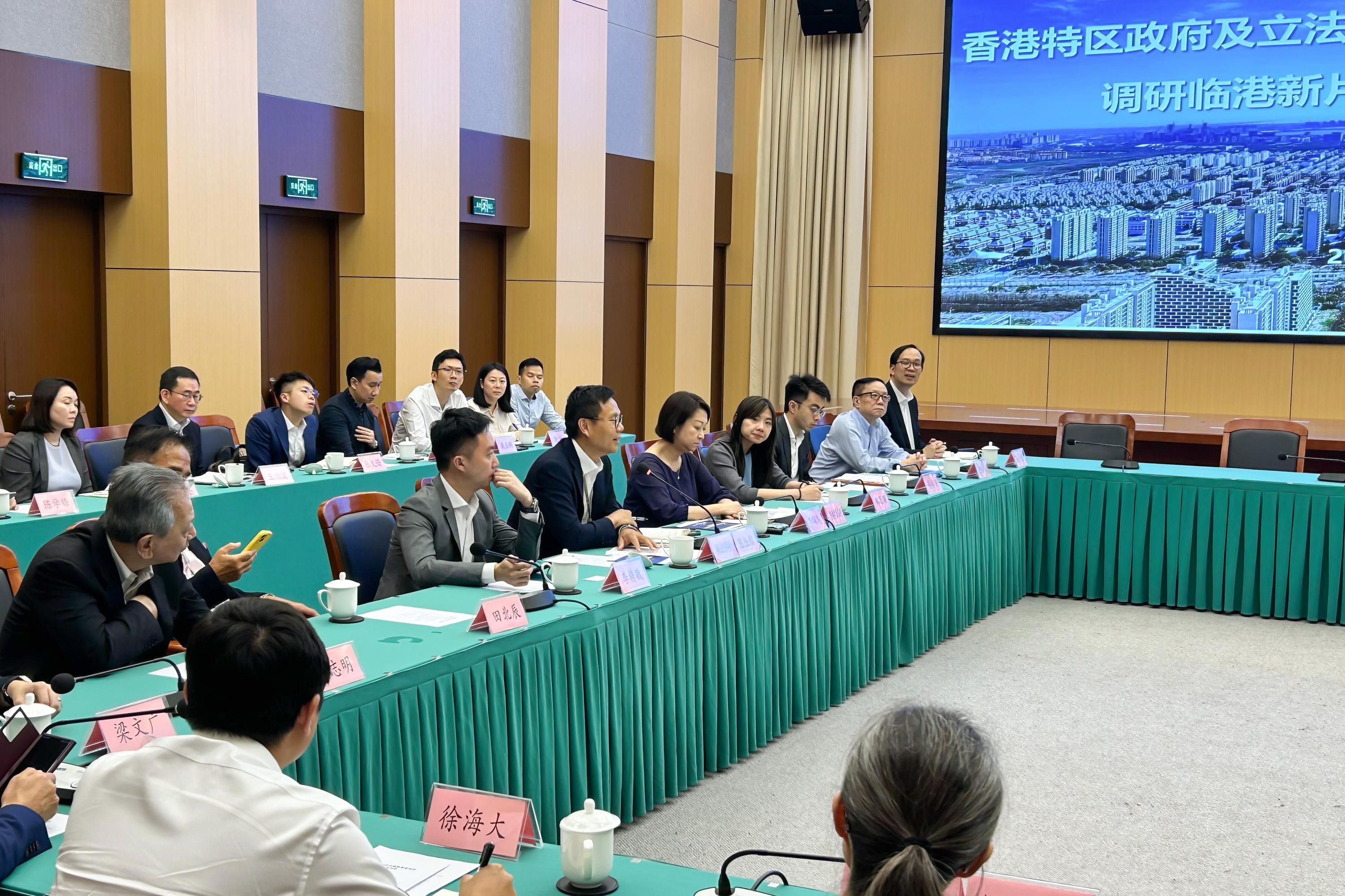 議員其後與上海自貿區臨港新片區管委會進行座談交流,聽取其代表介紹臨港中運量規劃、該區氫能產業的發展策略,並分享氫能公共交通工具應用的經驗。