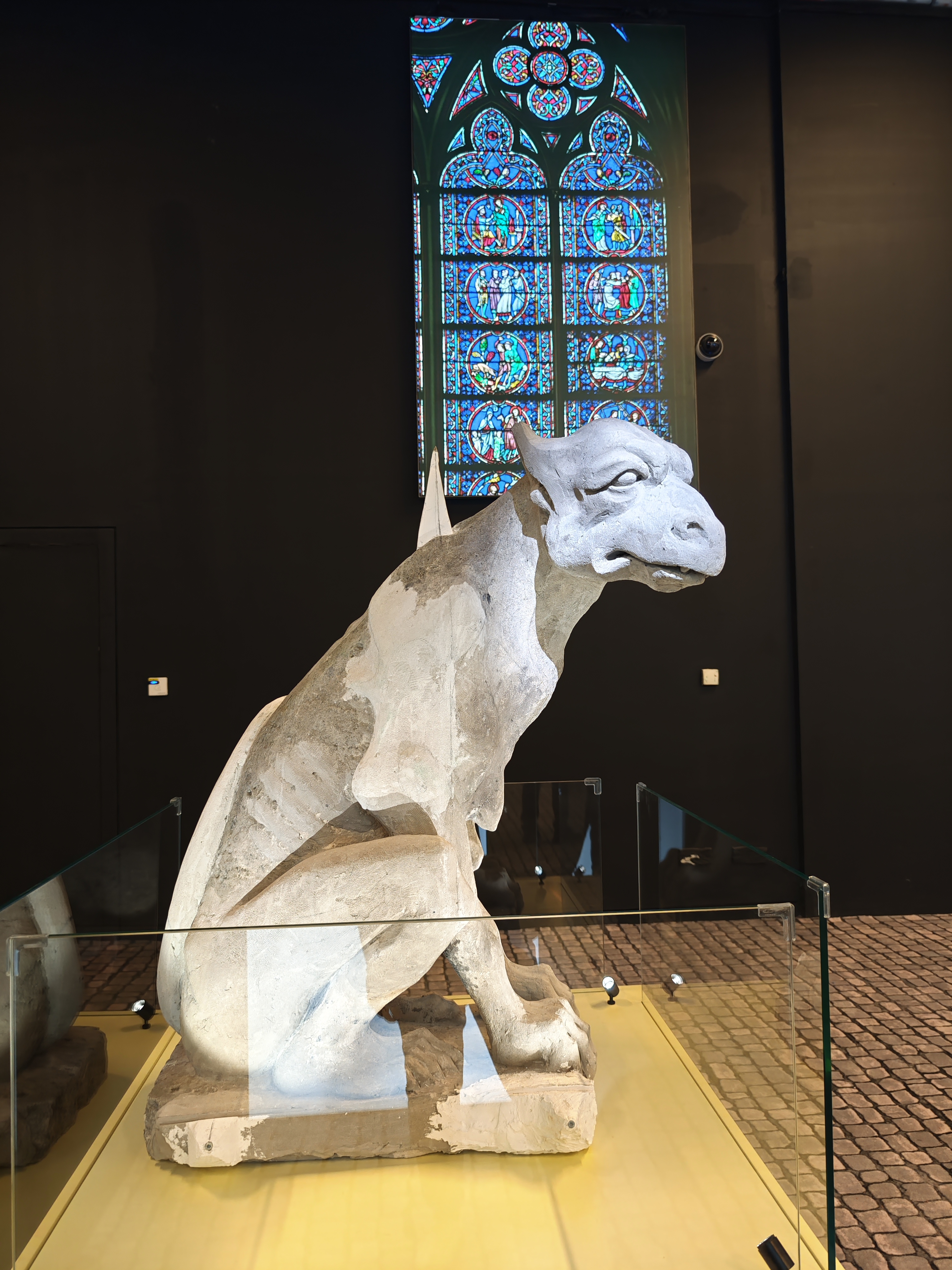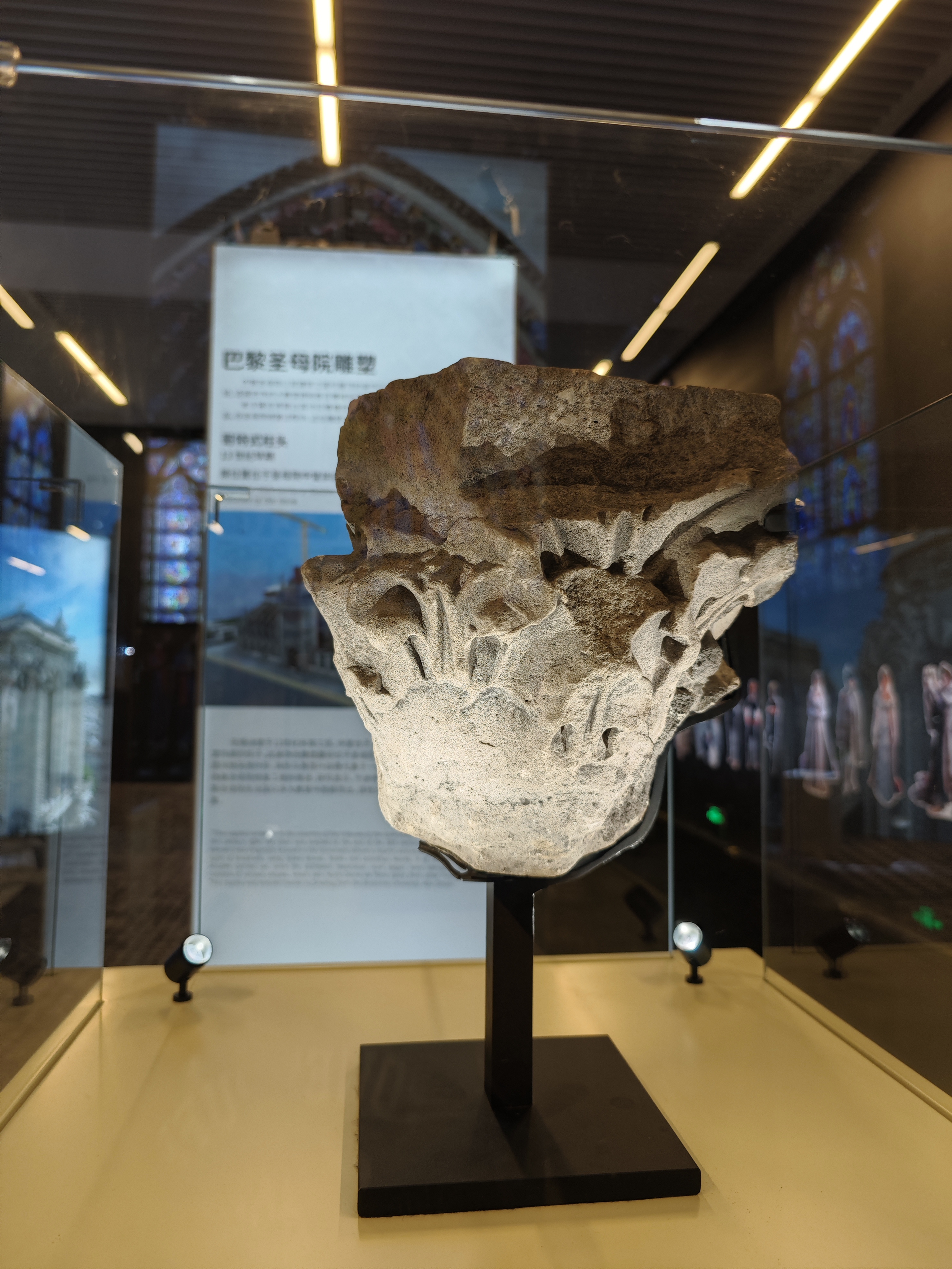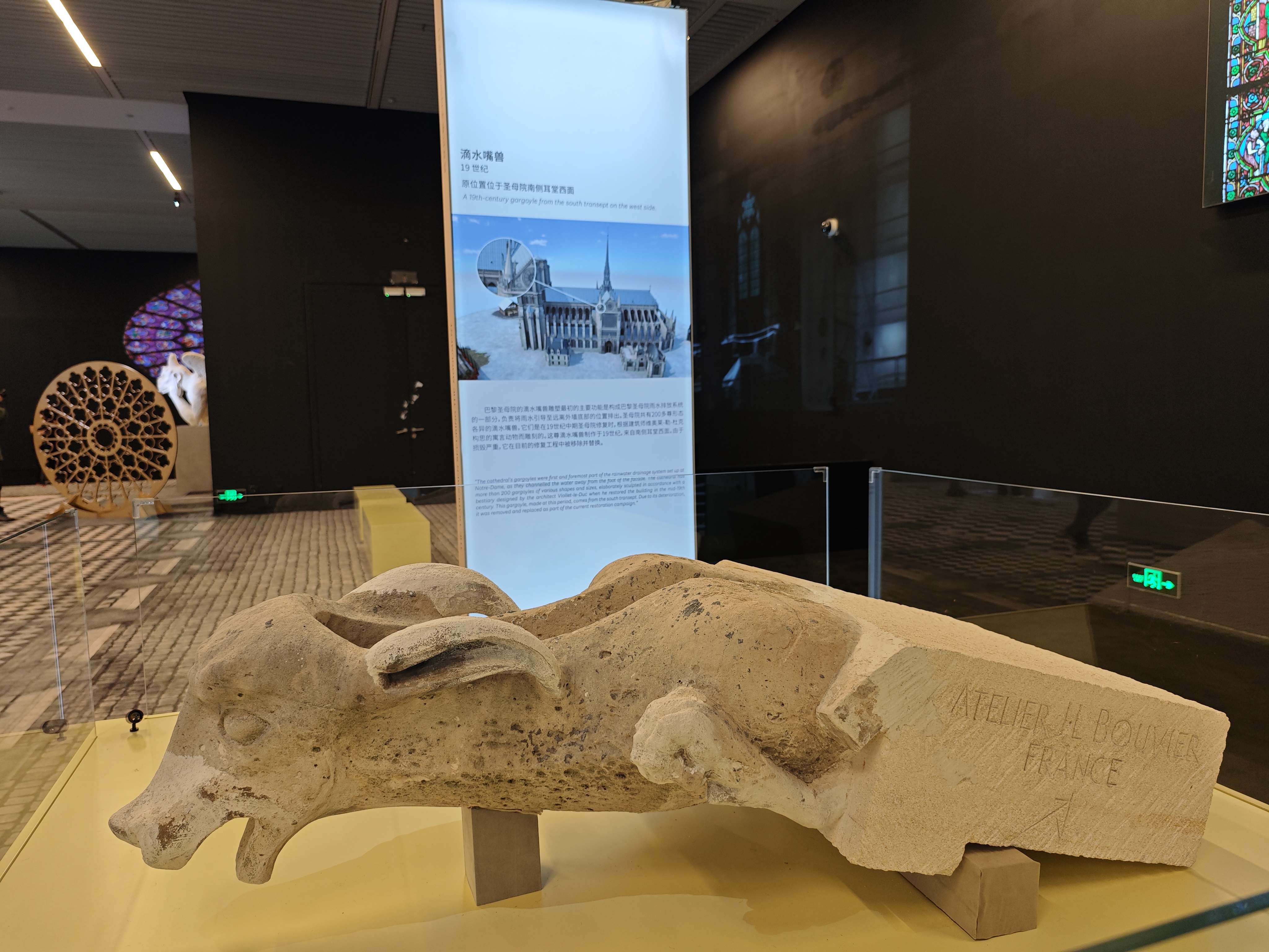 在現場展出的文物中,原位於聖母院南側山牆石像怪和原位於聖母院南側耳堂西面滴水嘴獸均為首度來華展出。19 世紀,建築師維奧萊-勒-杜克對巴黎聖母院上部進行了個性化設計,從古代神話和中世紀傳說中汲取靈感,用52尊石像怪裝飾塔樓,構建生動的寓言動物圖鑑。2023年,石像怪在修復時被移除並對其進行修補,以此為模型製作的複製件已安裝在聖母院上。滴水嘴獸最初用於雨水排放系統,將雨水引導遠離外牆底部的位置排出。19世紀中期聖母院修復時,雕刻了200多尊形態各異的滴水嘴獸。今次展出的滴水嘴獸因損毀嚴重,在目前的修復工程中被移除並替換。