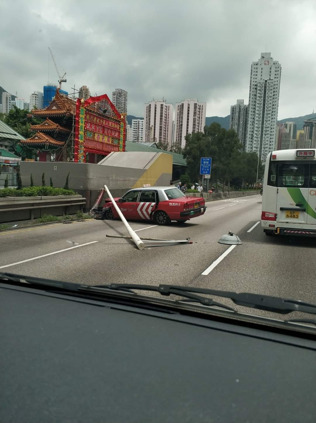 大公文匯全媒體報道,龍翔道往觀塘方向,至黃大仙祠對開,一輛載客的士今日(12日)中午失控撞向左邊石壆及一支燈柱,致燈柱斷開橫亙左線及中線。救援人員救出的士司機及一名乘客,二人均受輕傷,在場接受治療。