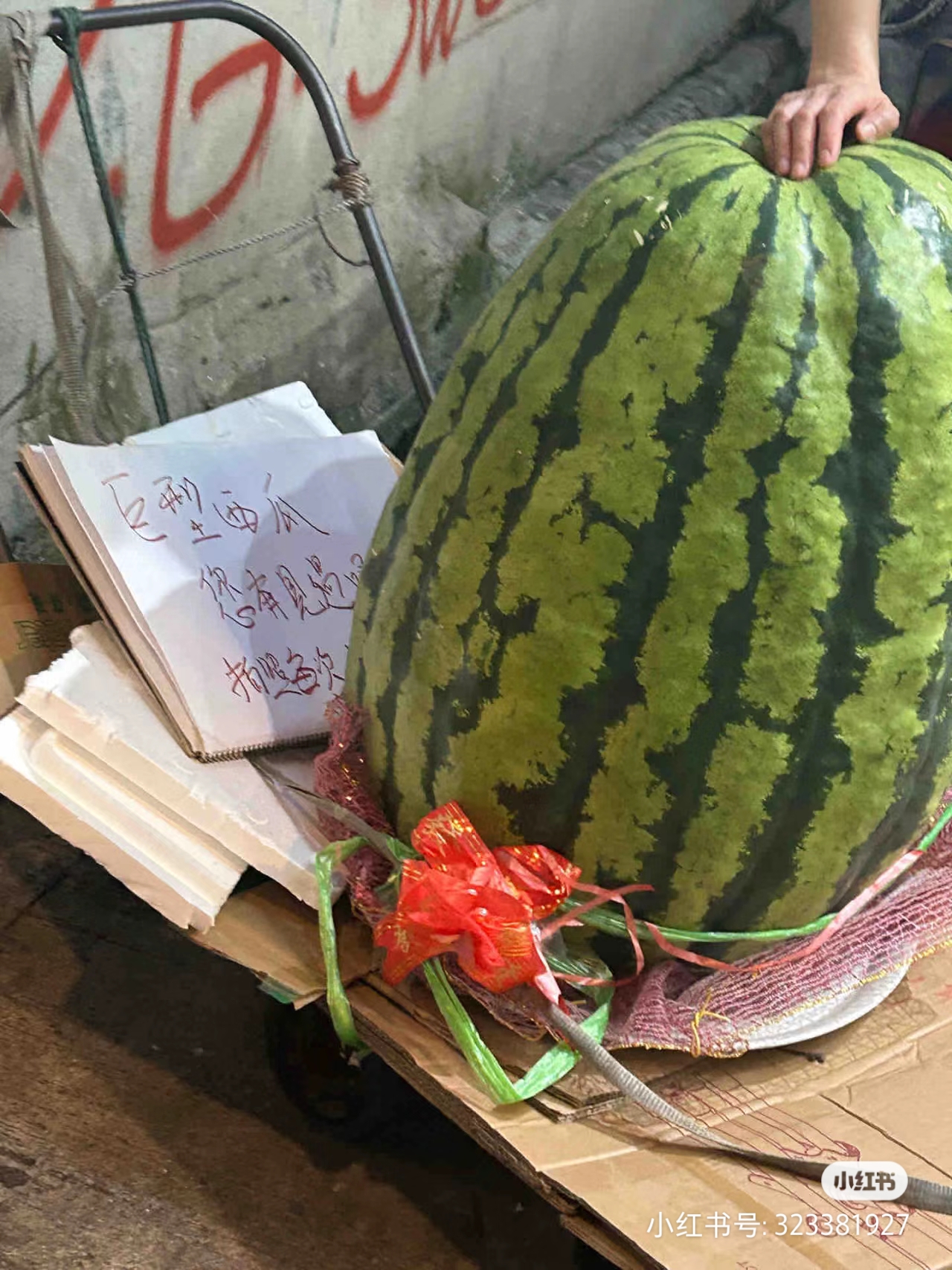 據網民稱,巨型西瓜是本月6日出現在後巷裏的。當時有人疑問該西瓜的來源,戲稱是「被颱風刮來的」。很快有網民解答說,是一位婆婆將西瓜推至上址,並收取10元一次的合影費。對此,有網民表示「太魔幻了,不會真有人花錢拍照吧」。目前,已經有不少網民曬出自己與西瓜的合影,有人還攜帶兒童或寵物前往,不過是否有付費不得而知。