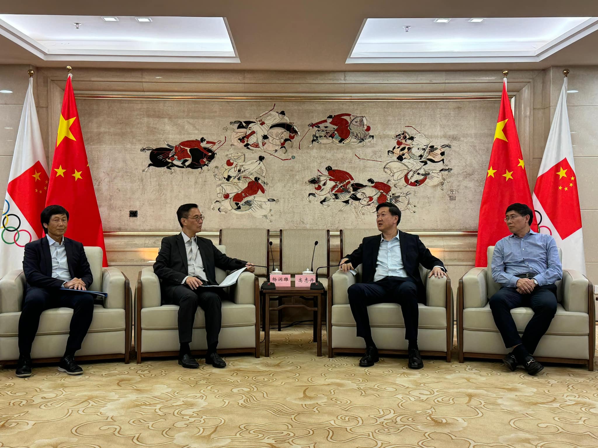 大公文匯全媒體報道,文化體育及旅遊局局長楊潤雄今日(12日)在社交平台表示,他昨日拜會了國家體育總局,向國家體育總局局長高志丹滙報香港籌備第十五屆全國運動會(全運會)的工作進展,重點包括兩項跨境賽事(田徑馬拉松及公路自行車)、信息系統、市場開發、宣傳、媒體及廣播安排等;同時亦聽取高志丹的指導。