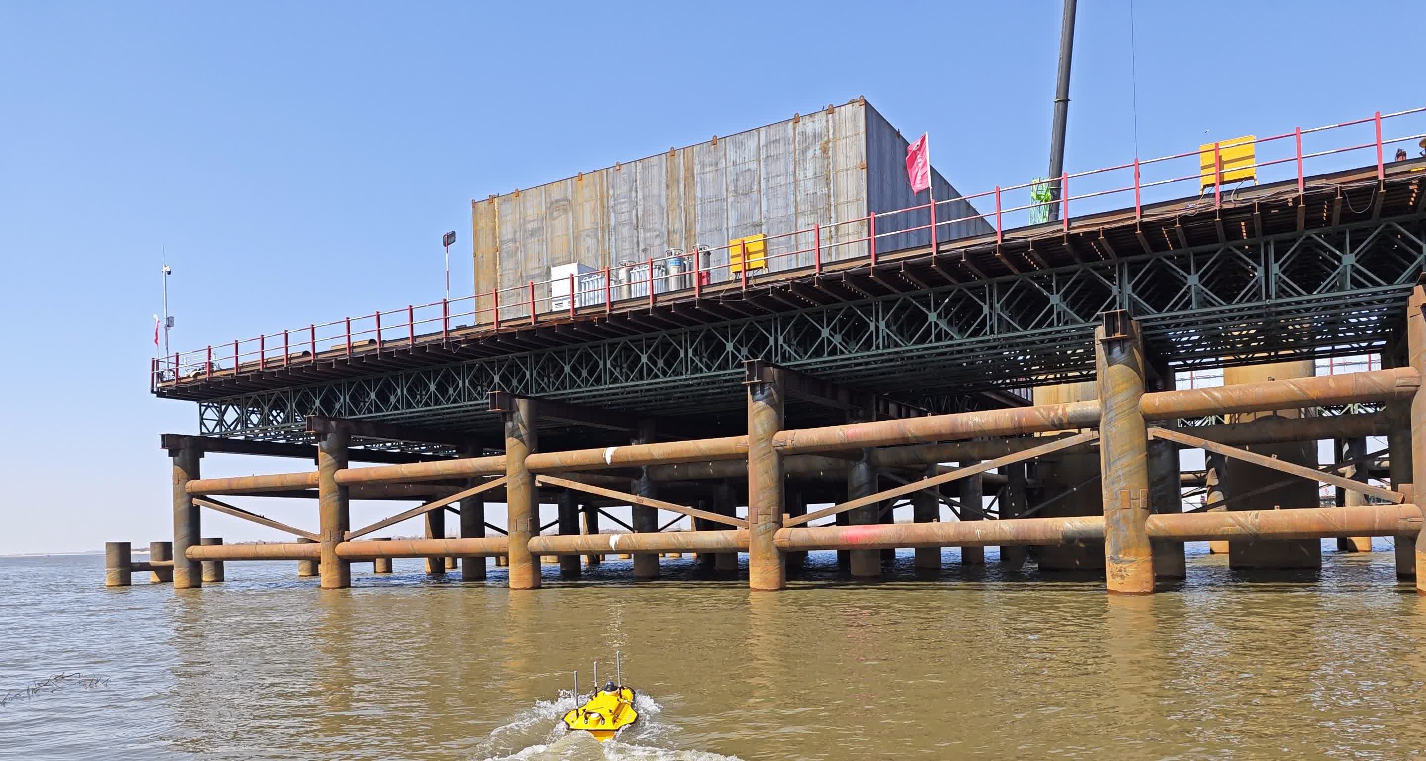 項目地處嚴寒地區,每年均需面臨兩個凌汛期的考驗,其間產生的冰排對鋼棧橋、鋼平台等臨時結構構成了嚴重威脅。西南環段松花江特大橋技術負責人劉皓南說,針對松花江特有的冰壓力、冰排等不確定風險,我們採用了應變傳感器監測鋼管表面的應變與變形,並開發了江面流速與波浪視覺測量系統。有效提升了江上臨時結構的力學狀態仿真分析能力,實現了冰排風險的預警與防控。這一技術的應用在今年四月松花江凌汛期施工中取得了良好的效果。