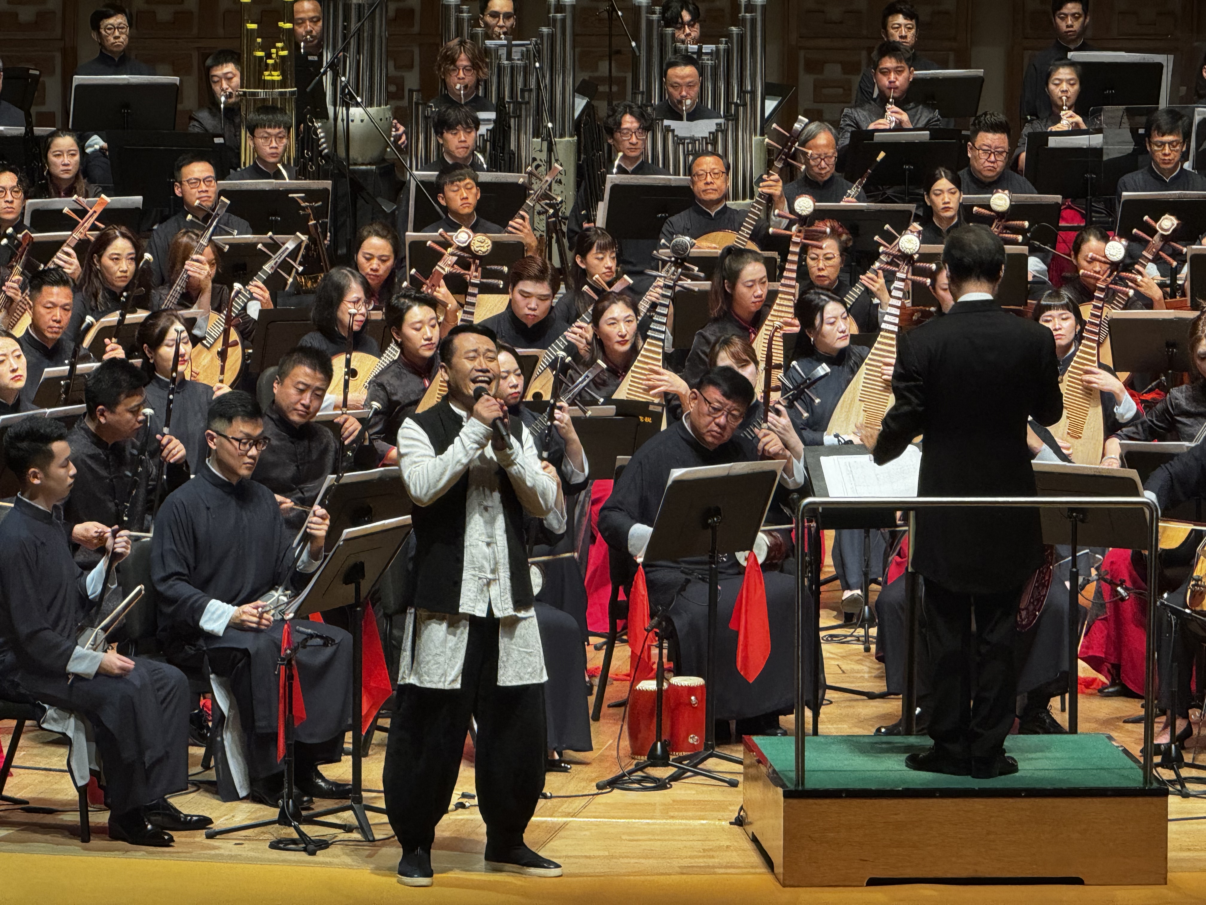 整場演奏由香港中樂團藝術總監兼首席指揮閻惠昌擔任指揮。閻惠昌在致辭時表示,七年前曾演奏《永遠的山丹丹》,當時就希望將這首曲目帶給香港的市民觀眾,即便新冠疫情阻隔,也未能打消這個計劃,如今終於實現了!